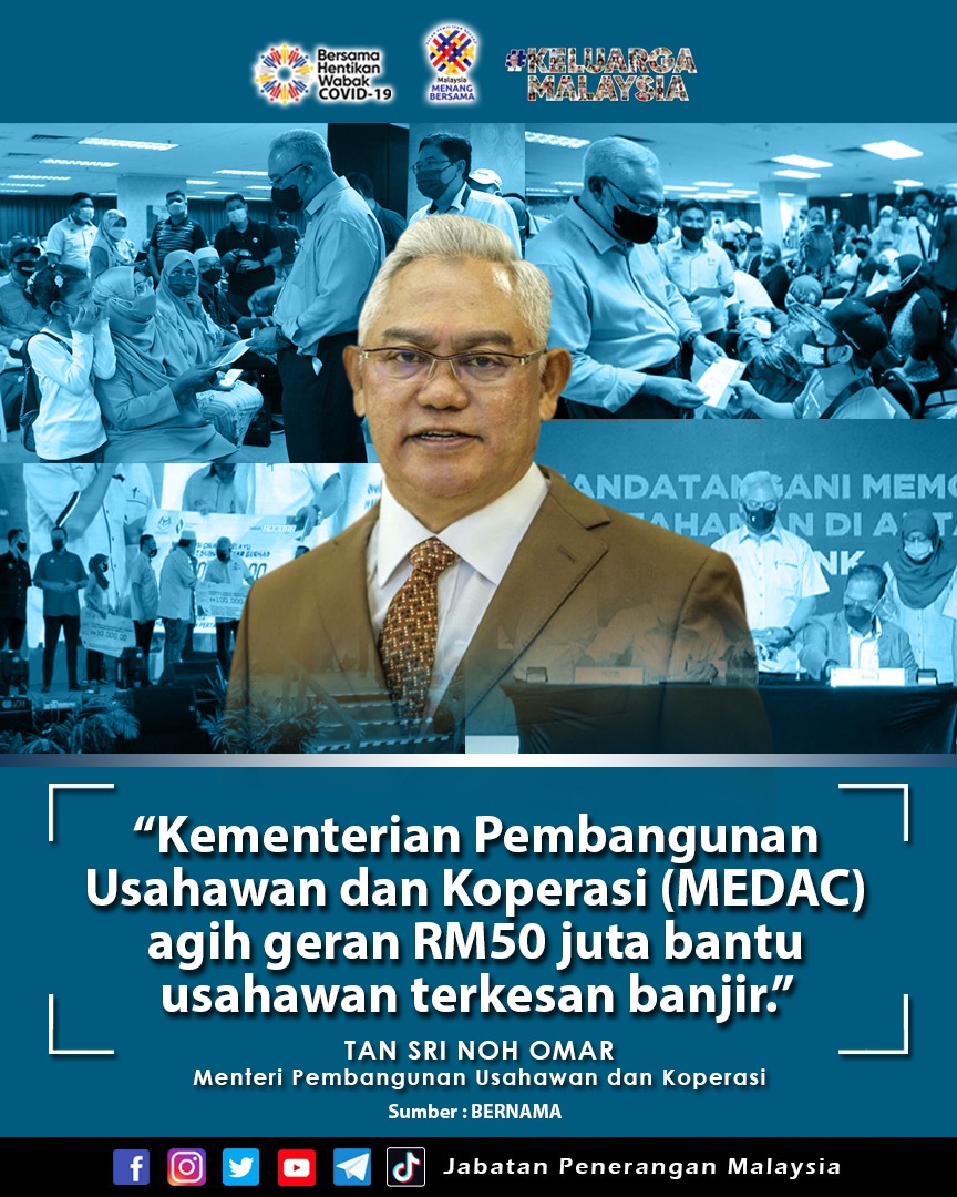 KEMENTERIAN PEMBANGUNAN USAHAWAN DAN KOPERASI (MEDAC) AGIH GERAN RM50 JUTA BANTU USAHAWAN TERKESAN BANJIR