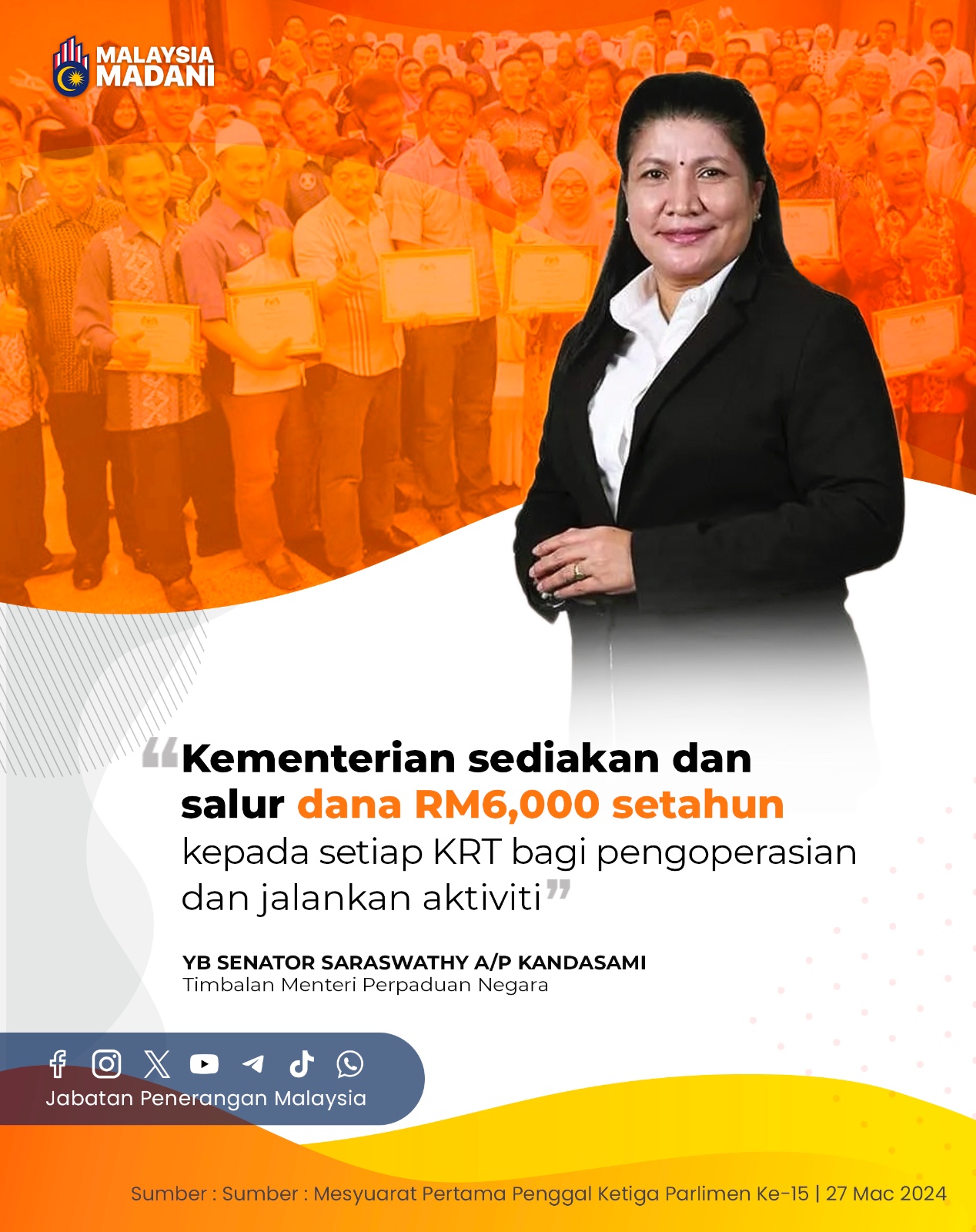 KEMENTERIAN SEDIAKAN DAN SALUR DANA RM6,000 SETAHUN KEPADA SETIAP KRT BAGI PENGOPERASIAN DAN JALANKAN AKTIVITI