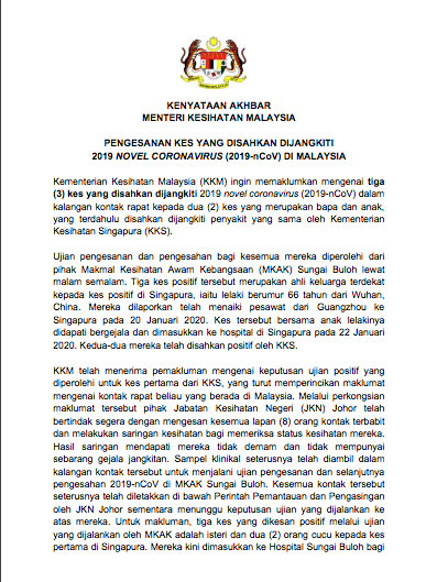 Category: 2019-nCoV Post Date: 25 January 2020 jonathan2020-01-25T15:07:17+08:00 [vc_row][vc_column][vc_empty_space][vc_column_text]Klik untuk lihat kenyataan akhbar[/vc_column_text][/vc_column][/vc_row]