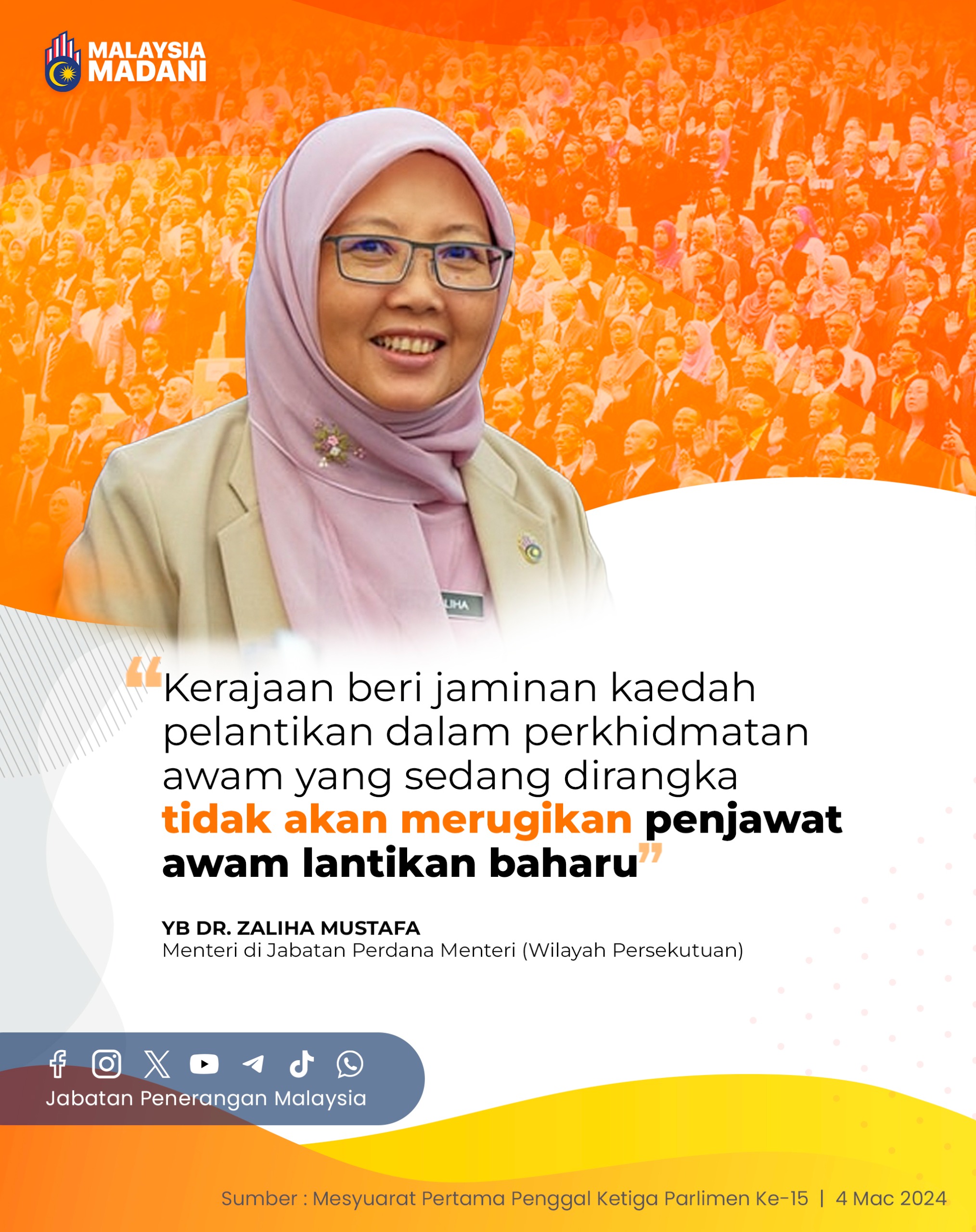 KERAJAAN BERI JAMINAN KAEDAH PELANTIKAN DALAM PERKHIDMATAN AWAM YANG SEDANG DIRANGKA TIDAK AKAN MERUGIKAN PENJAWAT AWAM LANTIKAN BAHARU