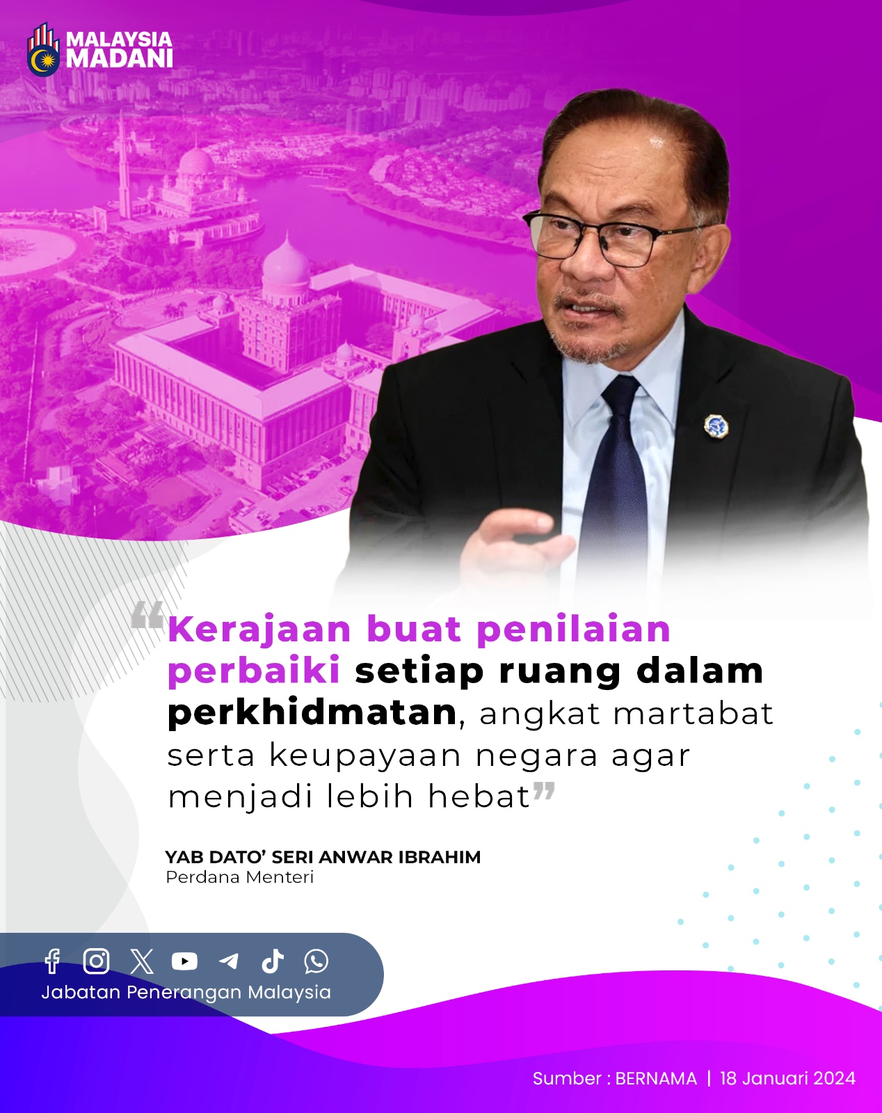 KERAJAAN BUAT PENILAIAN PERBAIKI SETIAP RUANG DALAM PERKHIDMATAN, ANGKAT MERTABAT SERTA KEUPAYAAN NEGARA AGAR MENJADI LEBIH HEBAT