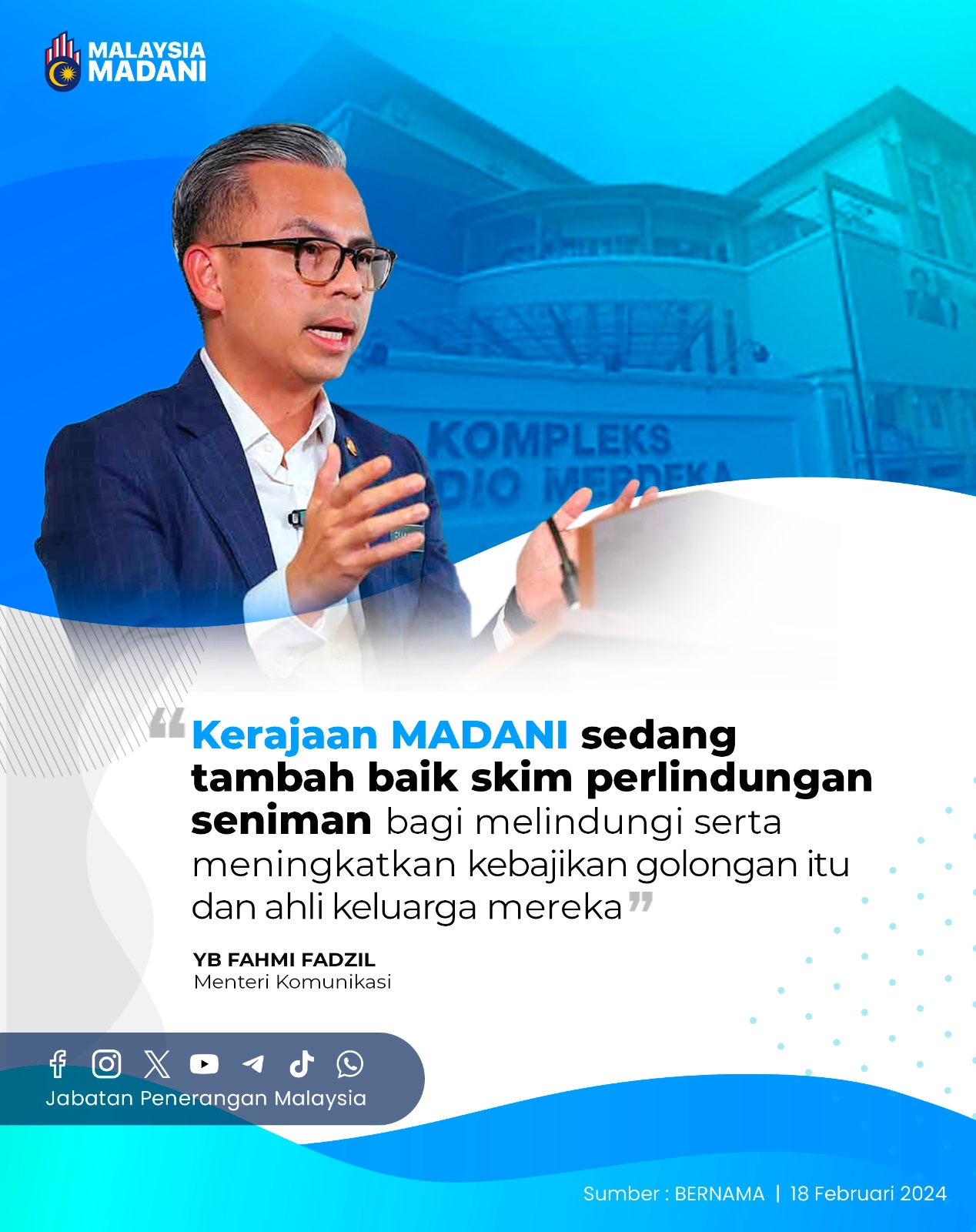 KERAJAAN MADANI SEDANG TAMBAH BAIK SKIM PERLINDUNGAN SENIMAN BAGI MELINDUNGI SERTA MENINGKATKAN KEBAJIKAN GOLONGAN ITU DAN AHLI KELUARGA MEREKA