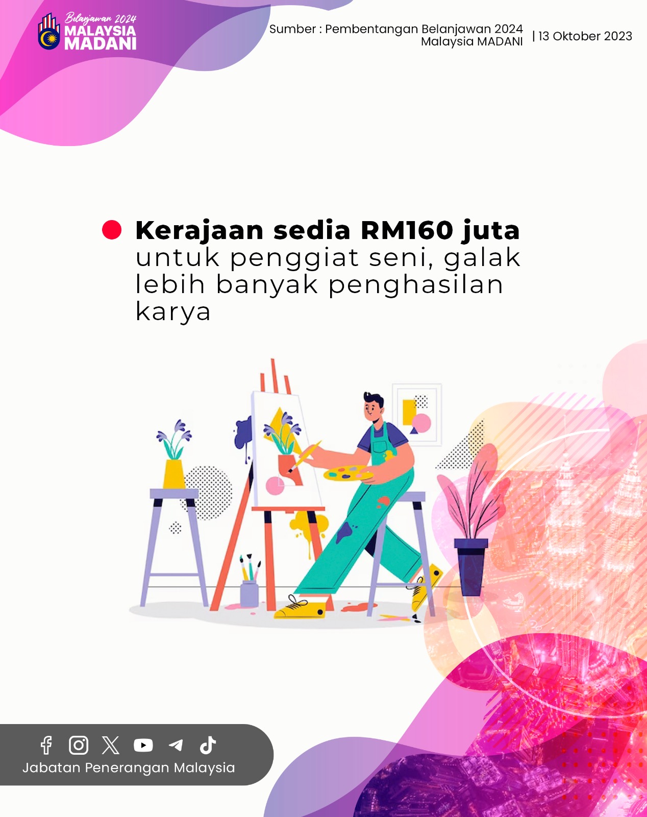 KERAJAAN SEDIA RM160 JUTA UNTUK PENGGIAT SENI, GALAK LEBIH BANYAK PENGHASILAN KARYA