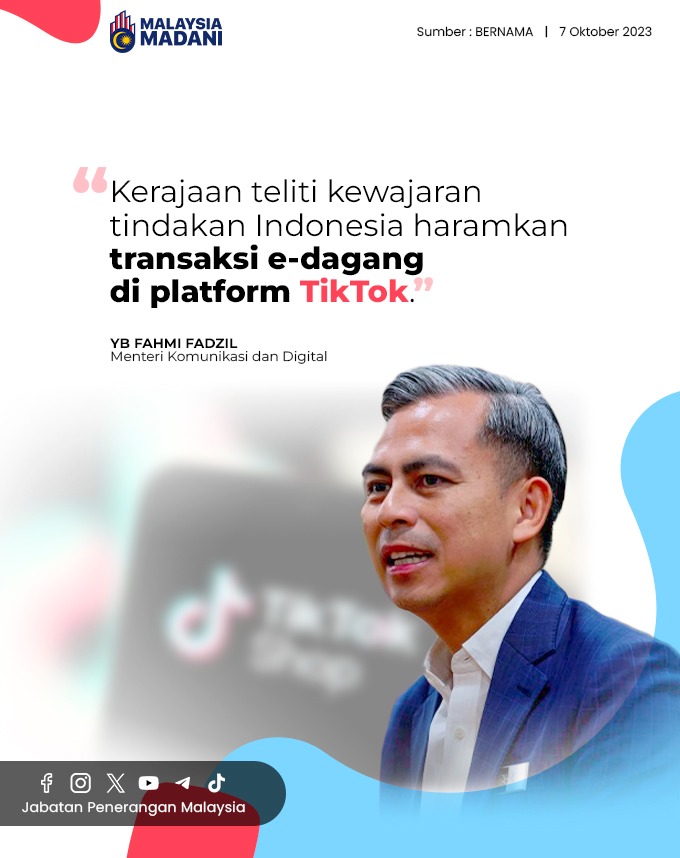 KERAJAAN TELITI KEWAJARAN TINDAKAN INDONESIA HARAMKAN TRANSAKSI E-DAGANG DI PLATFORM TIKTOK