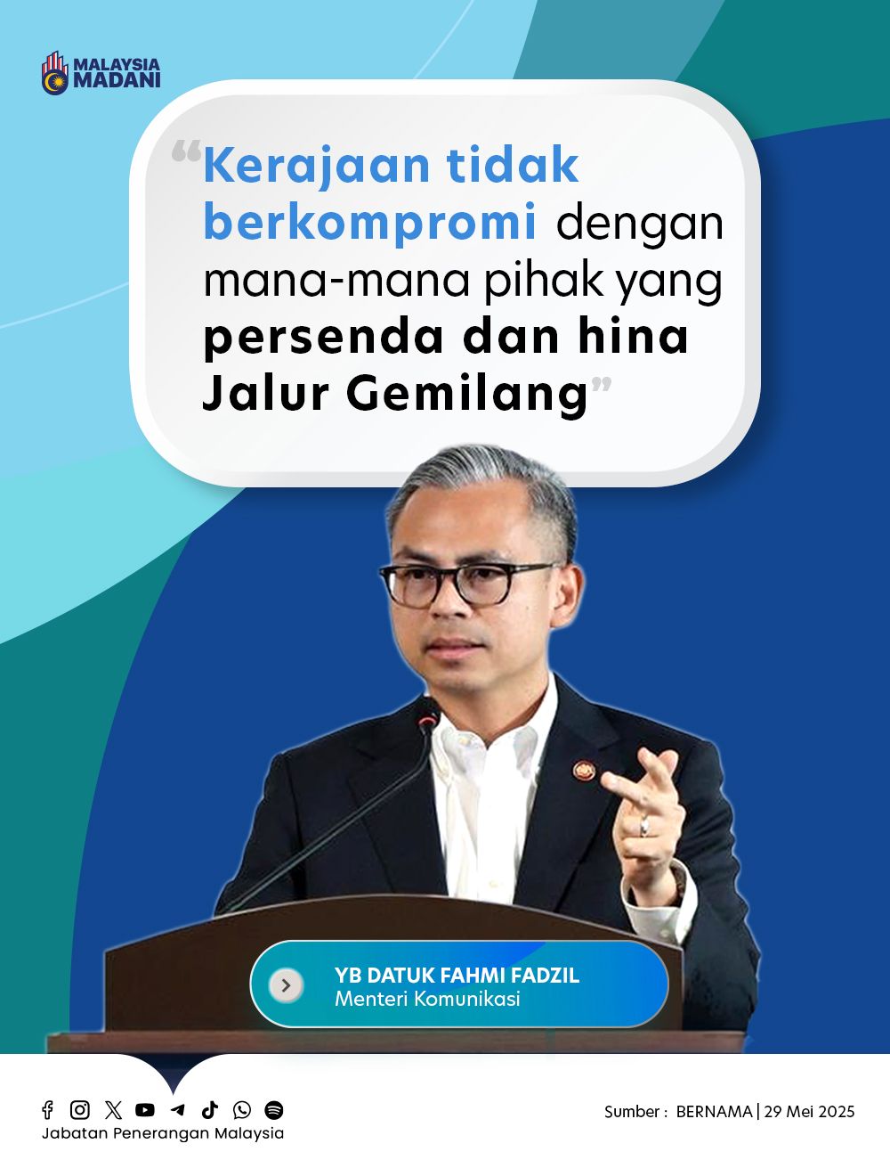 KERAJAAN TIDAK BERKOMPROMI DENGAN MANA-MANA PIHAK YANG PERSENDA DAN HINA JALUR GEMILANG