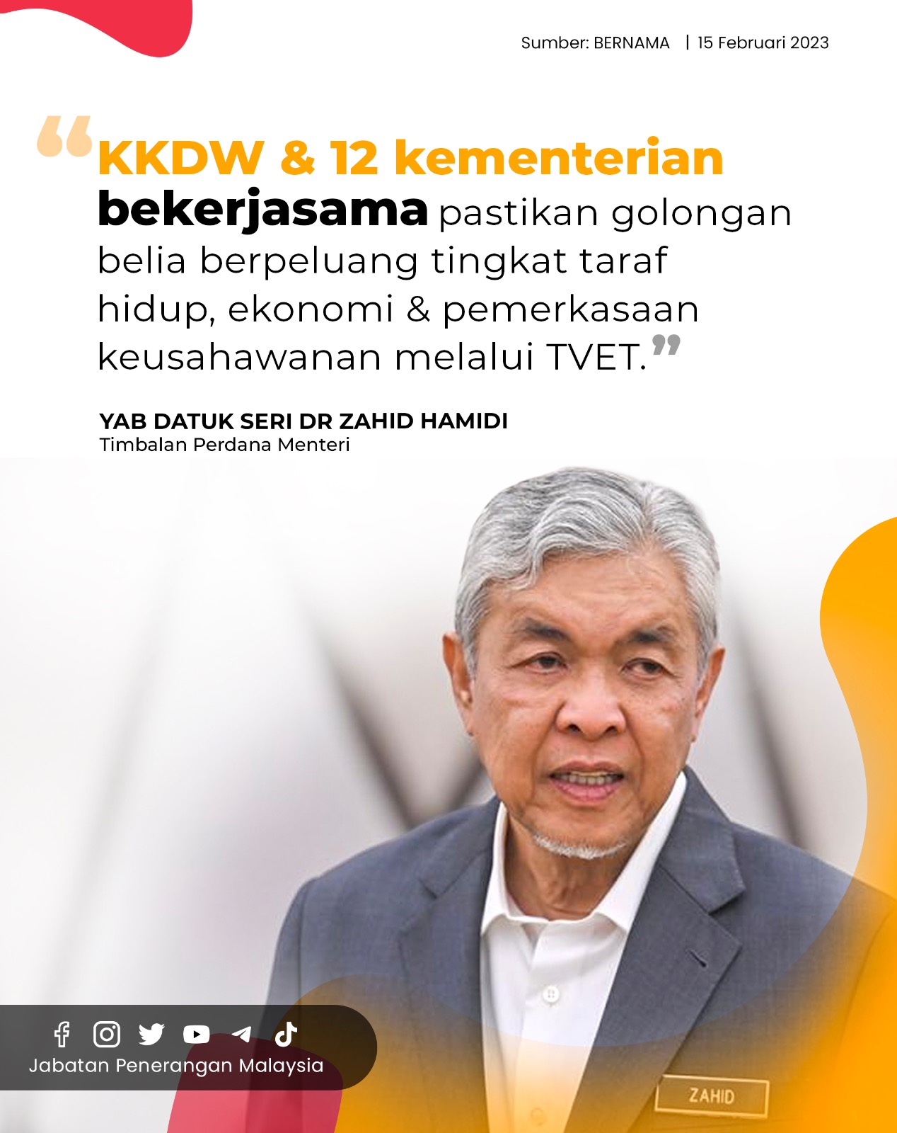 KKDW & 12 KEMENTERIAN BEKERJASAMA PASTIKAN GOLONGAN BELIA BERPELUANG TINGKAT TARAF HIDUP, EKONOMI & PEMERKASAAN KEUSAHAWAN MELALUI TVET