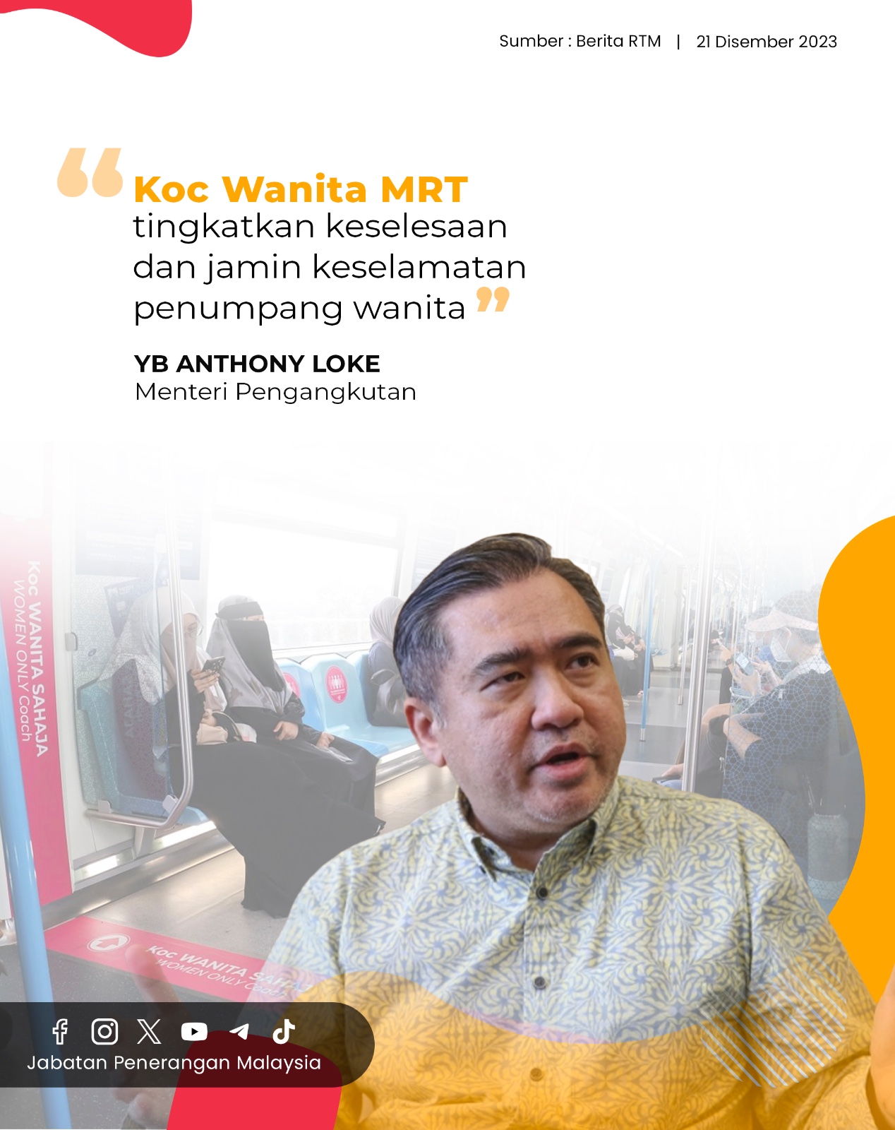 KOC WANITA MRT TINGKATKAN KESELESAAN DAN JAMIN KESELAMATAN PENUMPANG WANITA