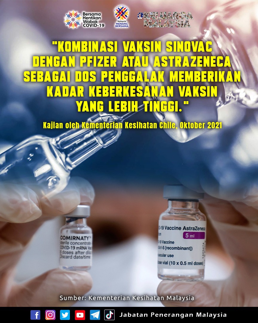 KOMBINASI VAKSIN SINOVAC DENGAN PFIZER ATAU ASTRAZENECA SEBAGAI DOS PENGGALAK MEMBERIKAN KADAR KEBERKESANAN VAKSIN YANG LEBIH TINGGI