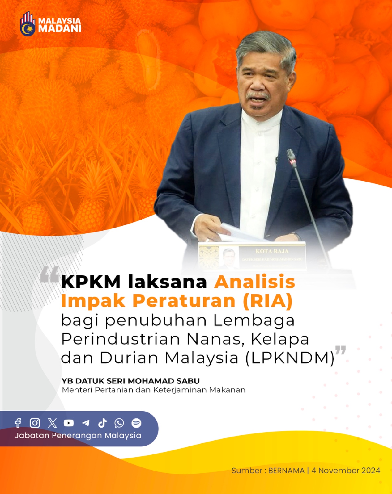 KPKM LAKSANA ANALISIS IMPAK PERATURAN (RIA) BAGI PENUBUHAN LEMBAGA PERINDUSTRIAN NANAS, KELAPA DAN DURIAN MALAYSIA (LPKNDM)