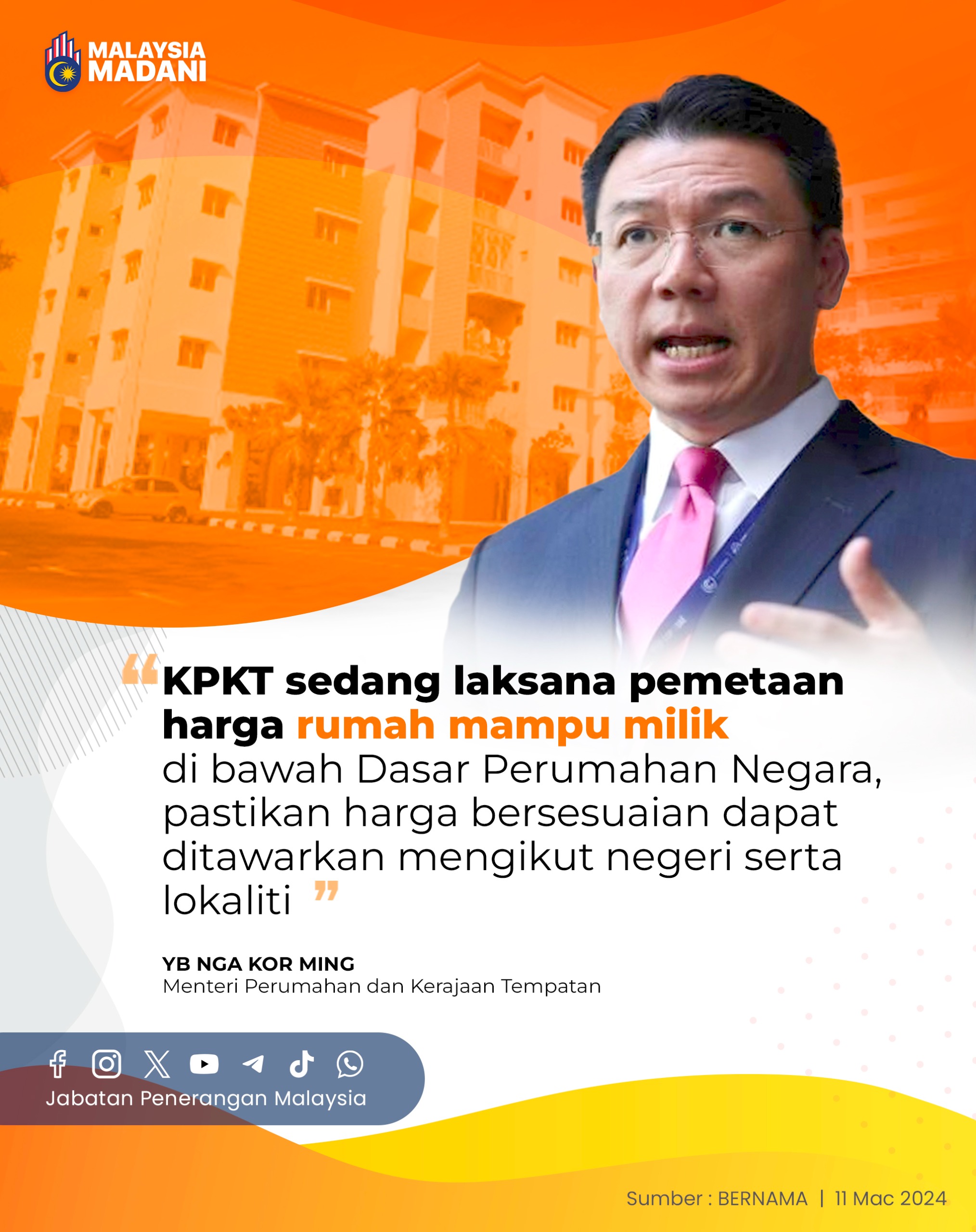KPKT SEDANG LAKSANA PEMETAAN HARGA RUMAH MAMPU MILIK DI BAWAH DASAR PERUMAHAN NEGARA, PASTIKAN HARGA BERSESUAIAN DAPAT DITAWARKAN MENGIKUT NEGERI SERTA LOKALITI