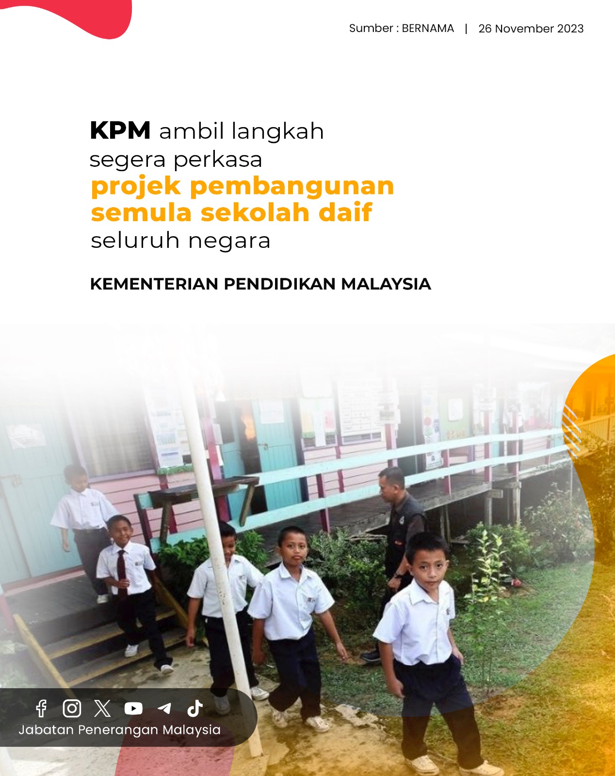 KPM AMBIL LANGKAH SEGERA PERKASA PROJEK PEMBANGUNAN SEMULA SEKOLAH DAIF SELURUH NEGARA