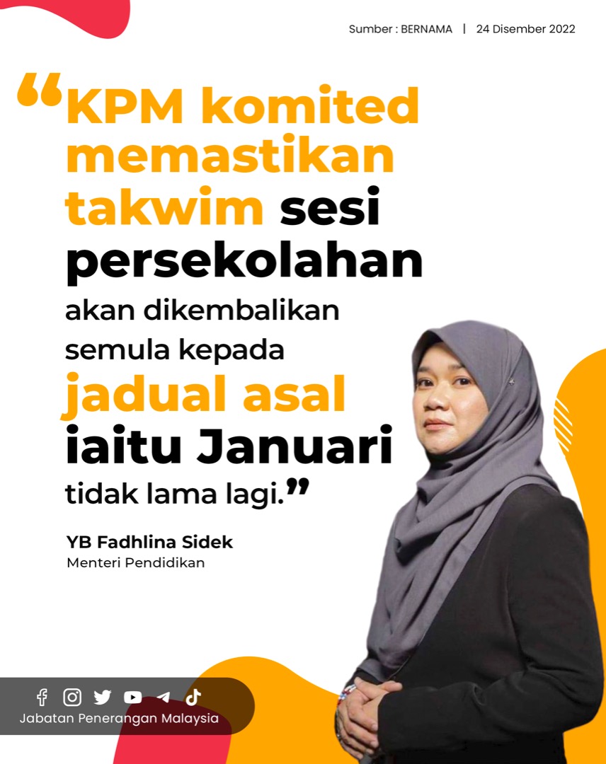 KPM KOMITED MEMASTIKAN TAKWIM SESI PERSEKOLAHAN AKAN DIKEMBALIKAN SEMULA KEPADA JADUAL ASAL IAITU JANUARI TIDAK LAMA LAGI