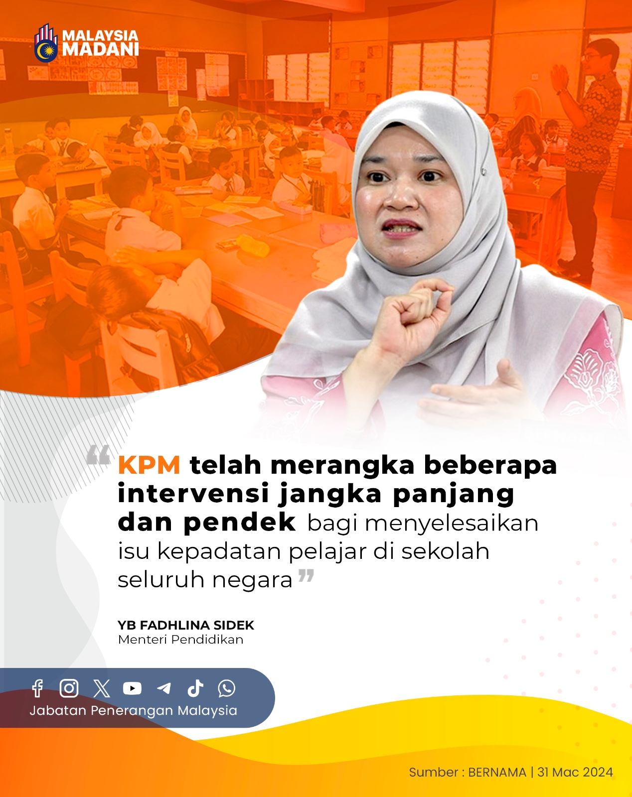 KPM TELAH MERANGKA BEBERAPA INTERVENSI JANGKA PANJANG DAN PENDEK BAGI MENYELESAIKAN ISU KEPADATAN PELAJAR DI SEKOLAH DI SELURUH NEGARA