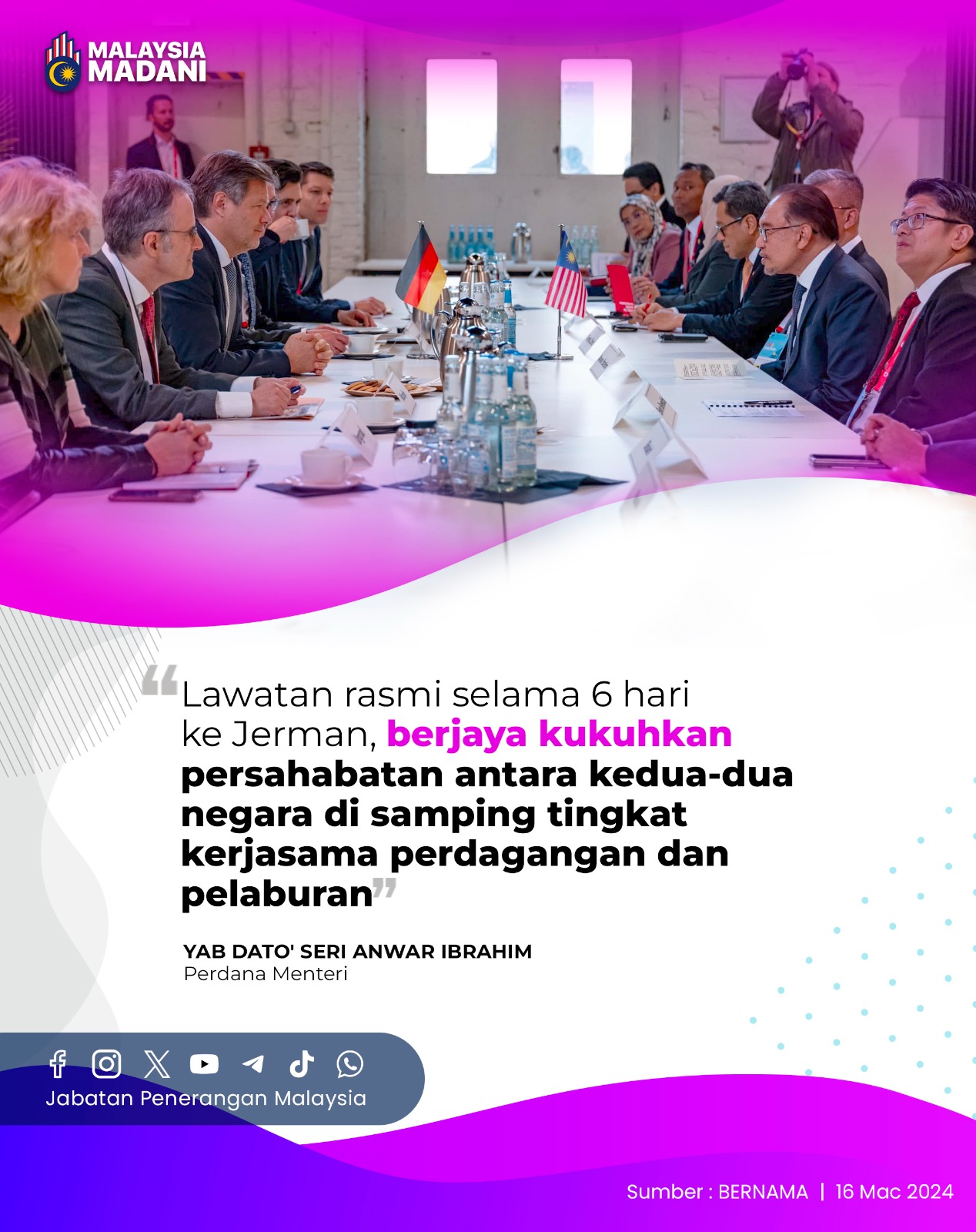 LAWATAN RASMI SELAMA 6 HARI KE JERMAN, BERJAYA KUKUHKAN PERSAHABATAN ANTARA KEDUA-DUA NEGARA DI SAMPING TINGKAT KERJASAMA PERDAGANGAN DAN PELABURAN