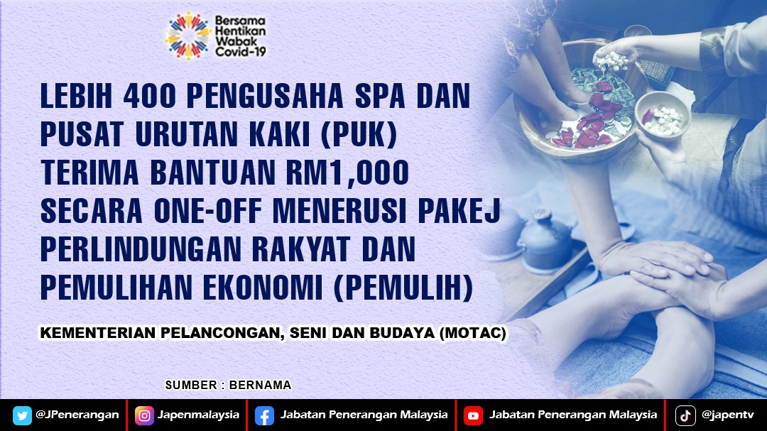 LEBIH 400 PENGUSAHA SPA DAN PUSAT URUTAN KAKI (PUK) TERIMA BANTUAN RM1,000 SECARA ONE-OFF MENERUSI PAKEJ PERLINDUNGAN RAKYAT DAN PEMULIHAN EKONOMI( PEMULIH)