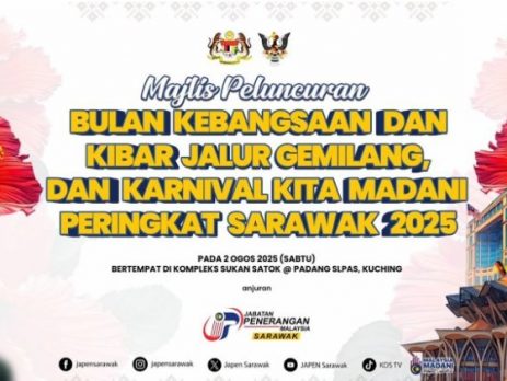 KUCHING: Majlis Peluncuran Bulan Kebangsaan dan Kibar Jalur Gemilang Peringkat Sarawak 2025 akan berlangsung pada 2 Ogos di Kompleks Sukan Satok...