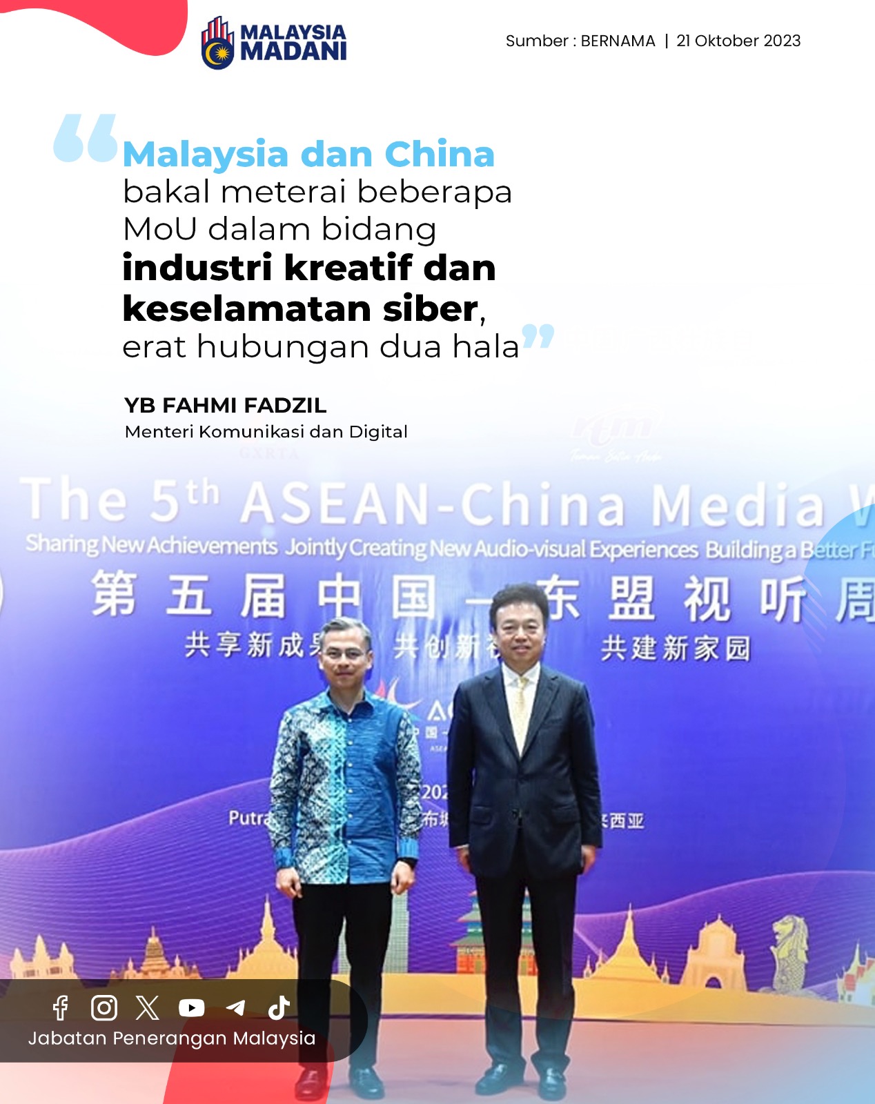 MALAYSIA DAN CHINA BAKAL METERAI BEBERAPA MOU DALAM BIDANG INDUSTRI KREATIF DAN KESELAMATAN SIBER, ERAT HUBUNGAN DUA HALA