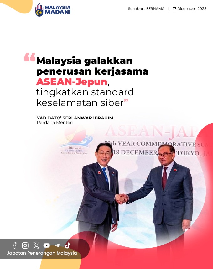 MALAYSIA GALAKKAN PENERUSAN KERJASAMA ASEAN-JEPUN, TINGKATKAN STANDARD KESELAMATAN SIBER