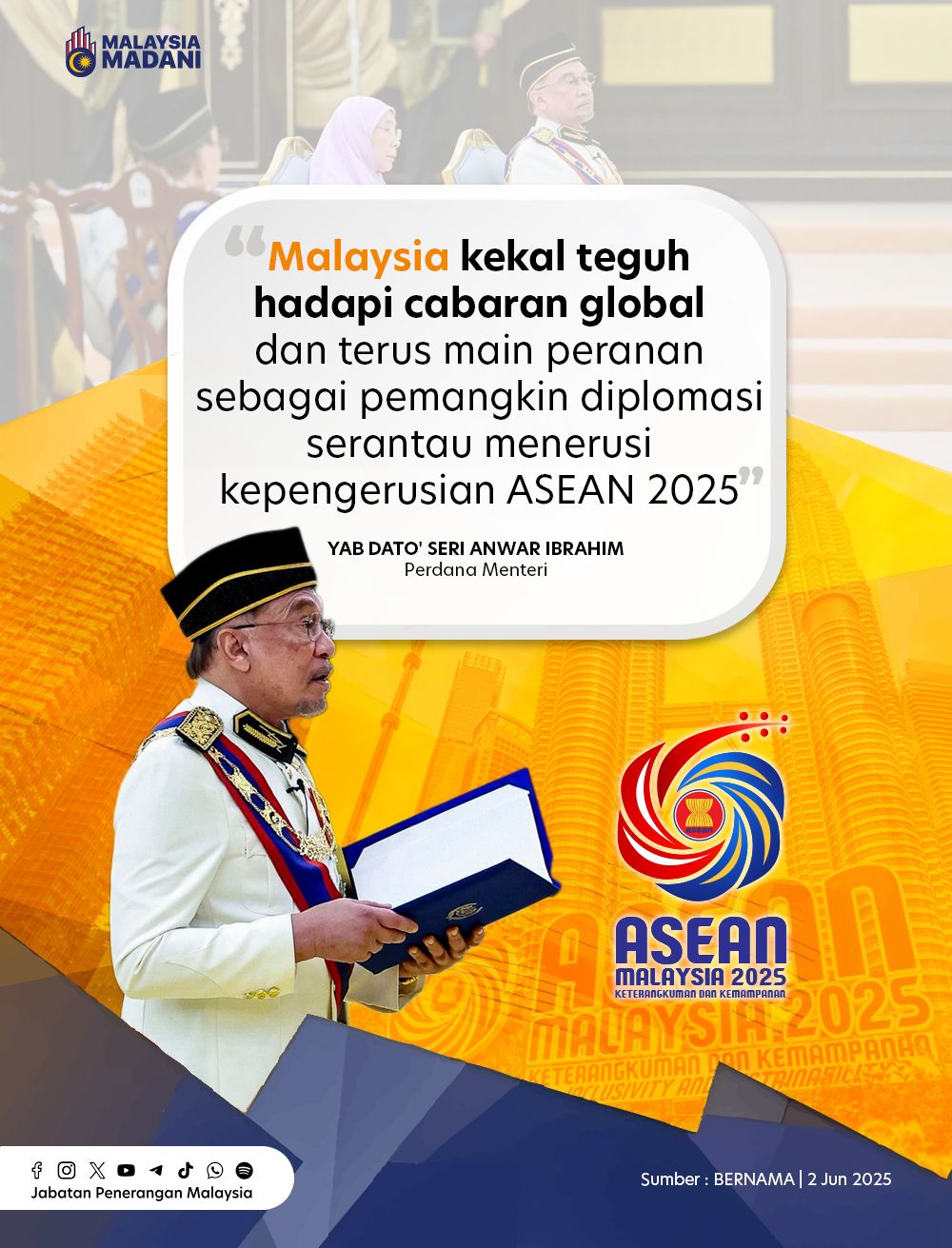 MALAYSIA KEKAL TEGUH HADAPI CABARAN GLOBAL DAN TERUS MAIN PERANAN SEBAGAI PEMANGKIN DIPLOMASI SERANTAU MENERUSI KEPENGERUSIAN ASEAN 2025