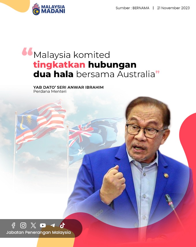 MALAYSIA KOMITED TINGKATKAN HUBUNGAN DUA HALA BERSAMA AUSTRALIA