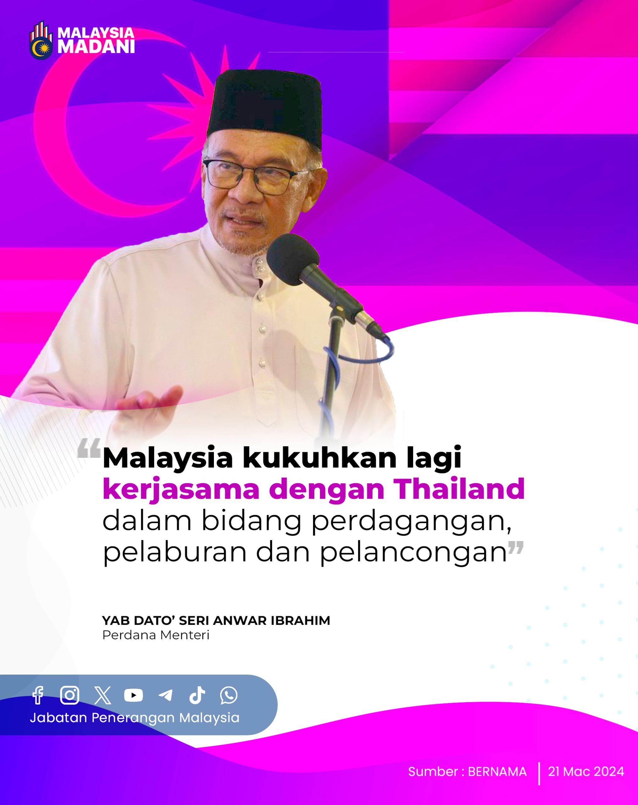MALAYSIA KUKUHKAN LAGI KERJASAMA DENGAN THAILAND DALAM BIDANG PERDAGANGAN, PELABURAN DAN PERLANCONGAN
