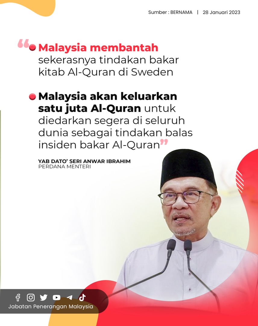 MALAYSIA MEMBANTAH SEKERASNYA TINDAKAN BAKAR KITAB AL-QURA DI SWEDAN