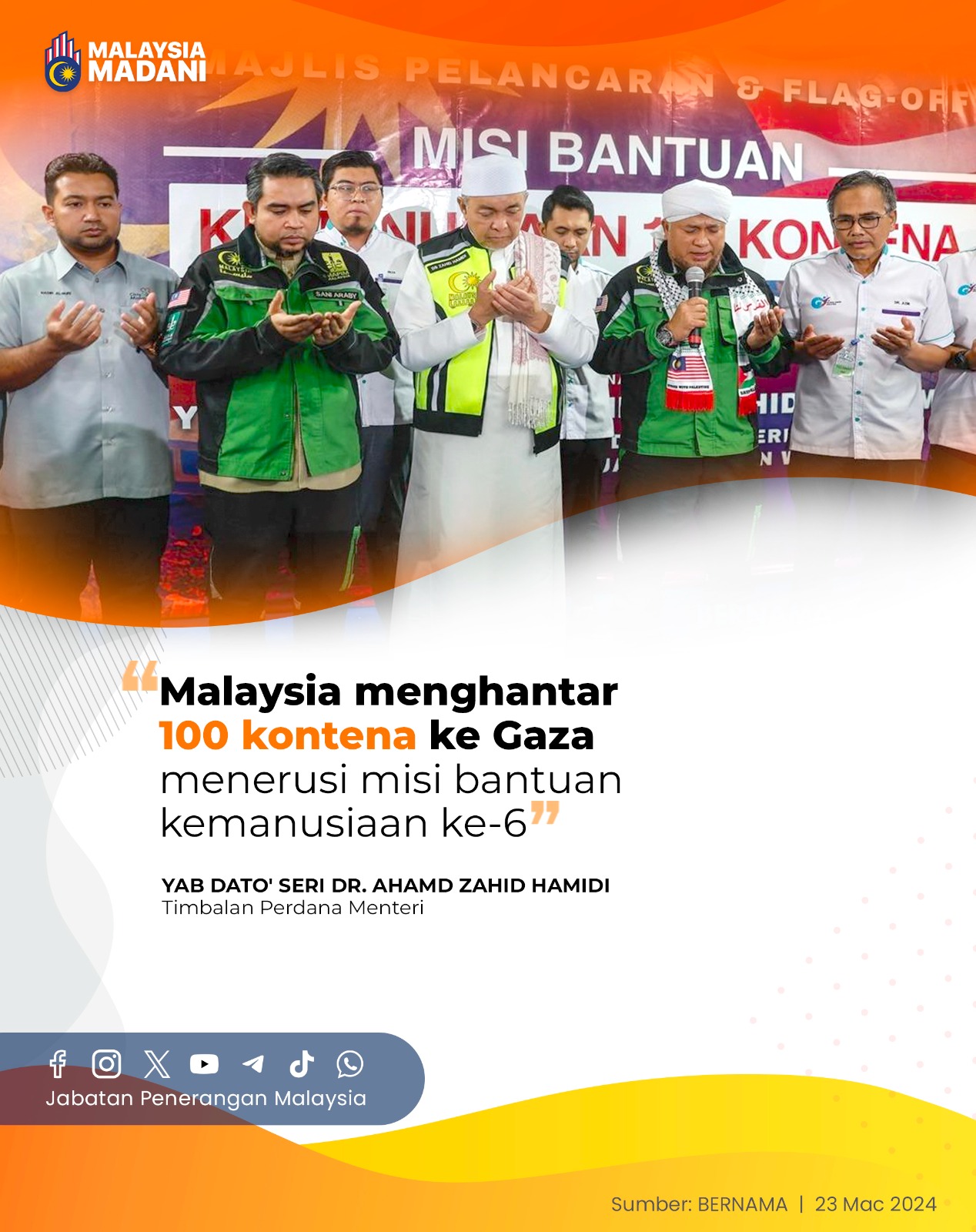 MALAYSIA MENGHANTAR 100 KONTENA KE GAZA MENERUSI MISI BANTUAN KEMANUSIAAN KE-6