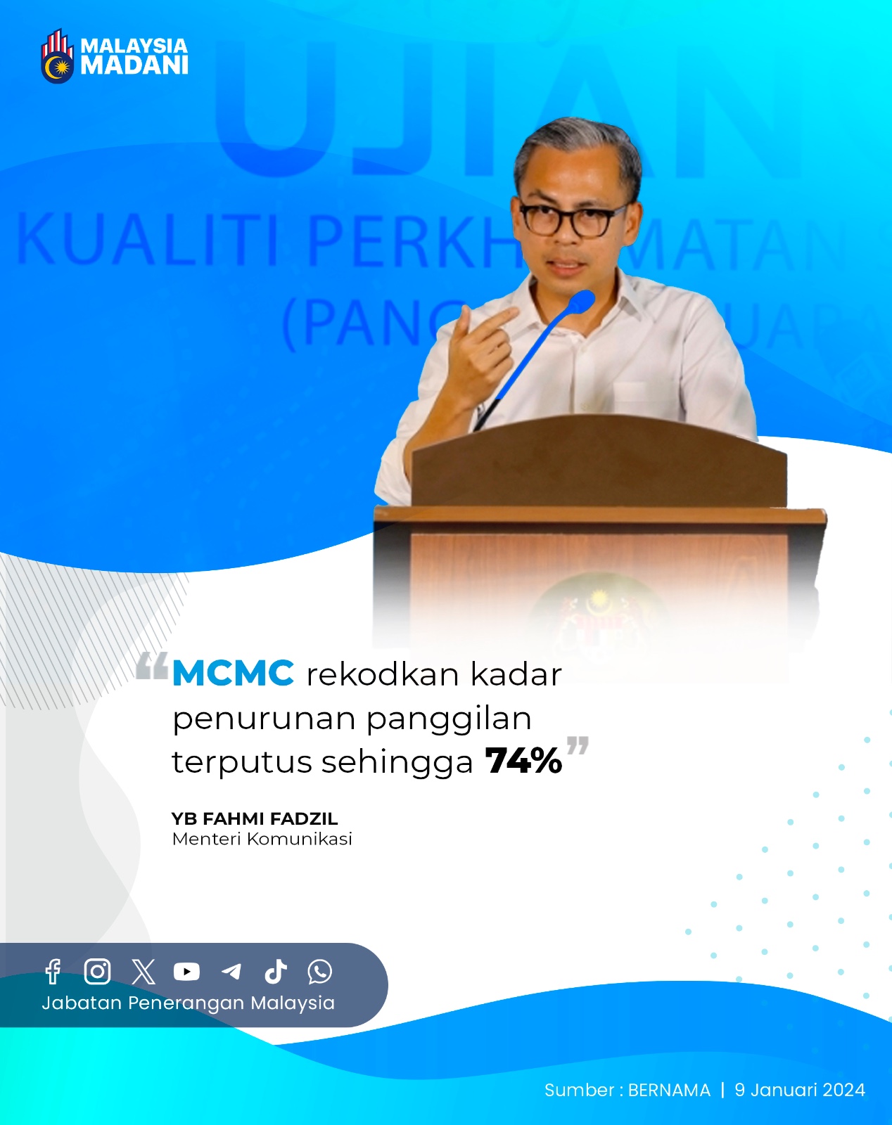 MCMC REKODKAN KADAR PENURUNAN PANGGILAN TERPUTUS SEHINGGA 74%