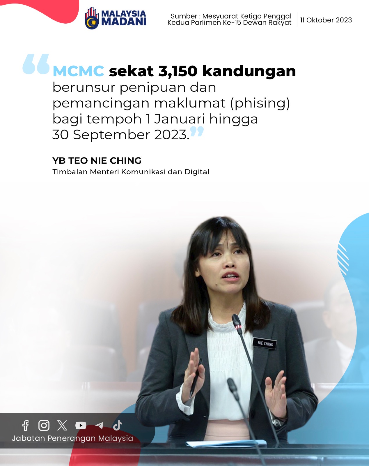 MCMC SEKAT 3150 KANDUNGAN BERUNSUR PENIPUAN DAN PEMANCINGAN MAKLUMAT (PHISING) BAGI TEMPOH 1 JANUARI HINGGA 30 SEPTEMBER 2023