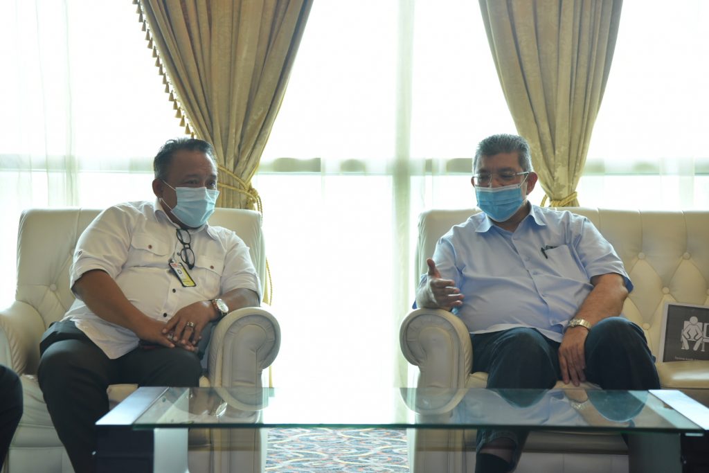 [vc_row][vc_column][vc_empty_space][vc_single_image image=”7945″ img_size=”full” alignment=”center”][vc_column_text]KUCHING: Menteri Komunikasyen enggau Multimedia Malaysia (KKMM), Dato’ Saifuddin Abdullah selamat datai ba Padang Bilun Antarabansa Kuching maya pukul 10.45 pagi Hari Satu ke udah beserimbai enggau penemuai ngagai Sarawak laban deka nyereta Aum Komiti Besai Nyambut Hari Malaysia 2020 ke deka disambut ba Sibu kena 16 September 2020.