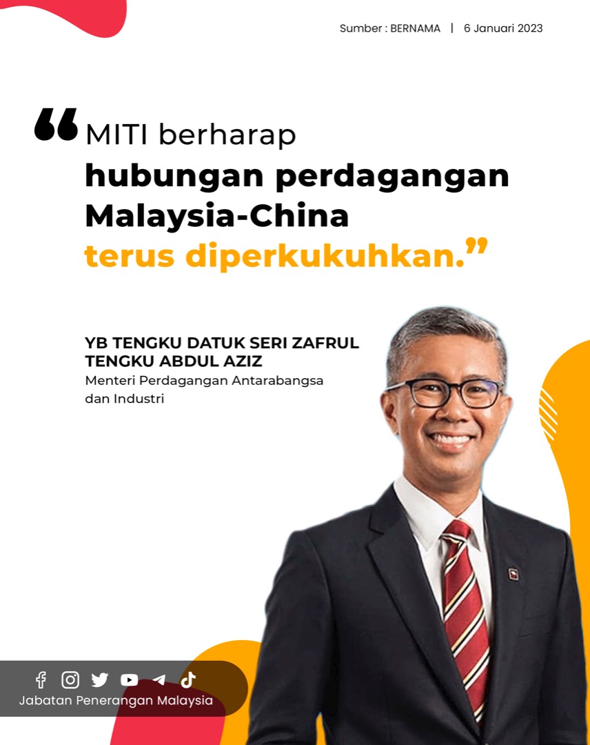 MITI BERHARAP HUBUNGAN PERDAGANGAN MALAYSIA-CHINA TERUS DIPERKUKUHKAN