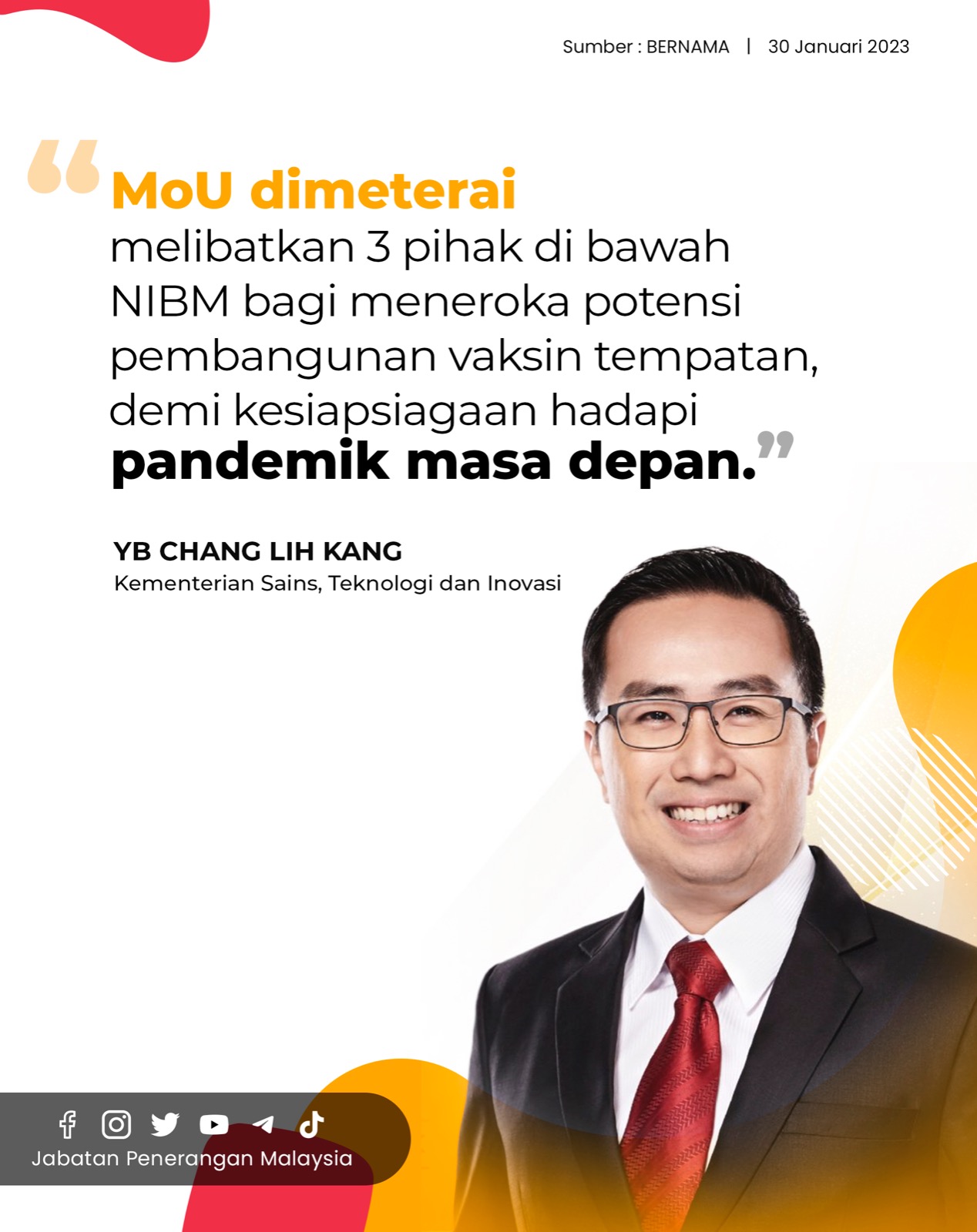 MOU DIMETERAI MELIBATKAN 3 PIHAK DI BAWAH NIBM BAGI MENEROKAI POTENSI PEMBANGUNAN VAKSIN TEMPATAN DEMI KESIAPSIAGAAN HADAPI PANDEMIK MASA DEPAN