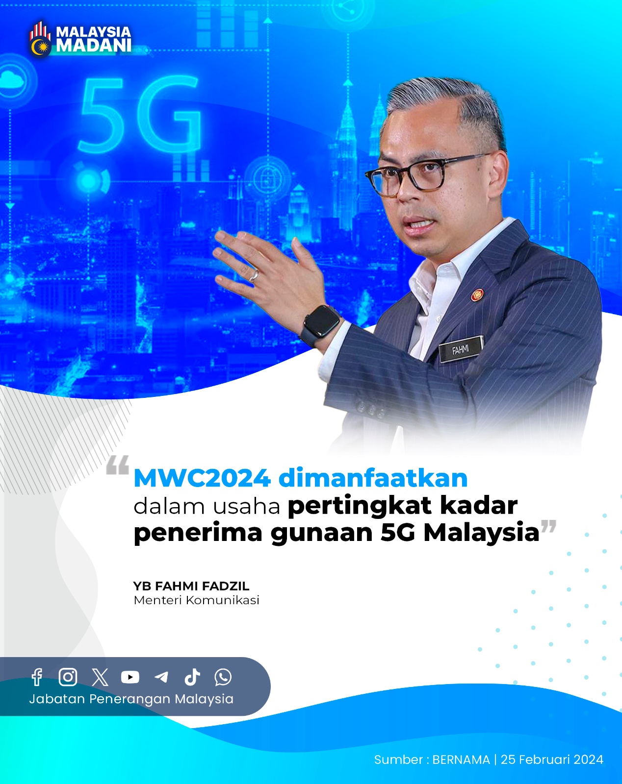 MWC2024 DIMANFAATKAN DALAM USAHA PERTINGKAT KADAR PENERIMA GUNAAN 5G MALAYSIA