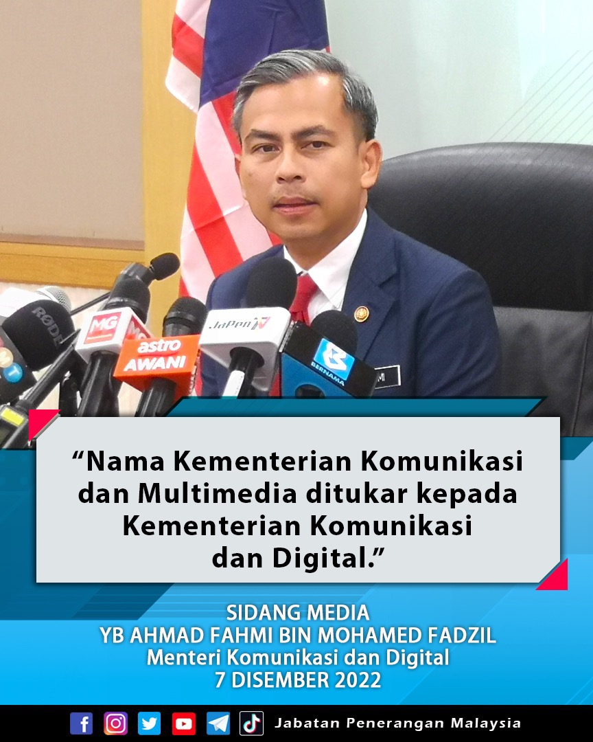 NAMA KEMENTERIAN KOMUNIKASI DAN MULTIMEDIA DITUKAR KEPADA KEMENTERIAN KOMUNIKASI DAN DIGITAL
