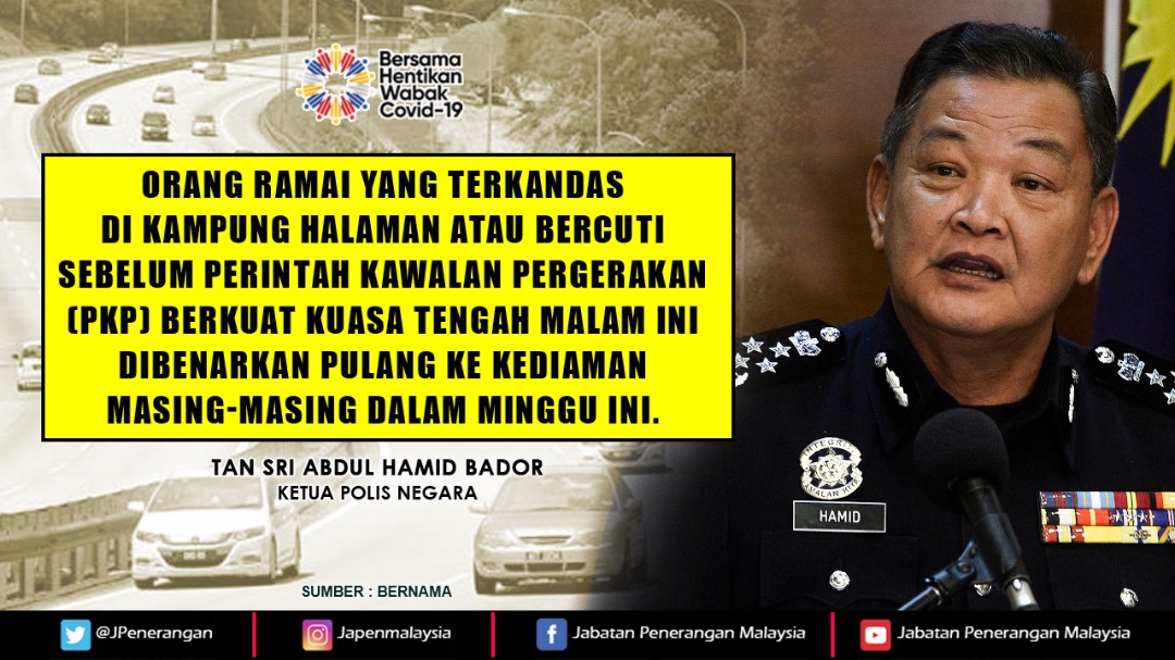 ORANG RAMAI YANG TERKANDAS DI KAMPUNG HALAMAN ATAU BERCUTI SEBELUM PERINTAH KAWALAN PERGERAKAN PKP BERKUAT KUASA TENGAH MALAM INI DIBENARKAN PULANG KE KEDIAMAN MASING-MASING DALM MINGGU INI