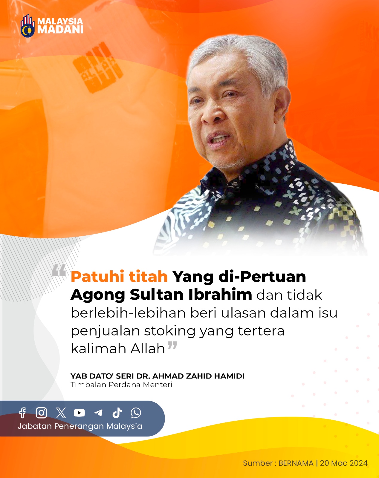 PATUHI TITAH YANG DI-PERTUAN AGONG SULTAN IBRAHIM DAN TIDAK BERLEBIH-LEBIH BERI ULASAN DALAM ISU PENJUALAN STOKIN YANG TERTERA KALIMAH ALLAH