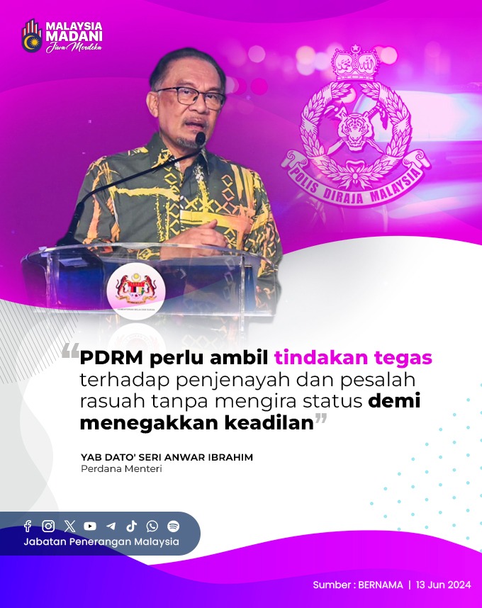 PDRM PERLU AMBIL TINDAKAN TEGAS TERHADAP PENJENAYAH DAN PESALAH RASUAH TANPA MENGIRA STATUS DEMI MENEGAKKAN KEADILAN