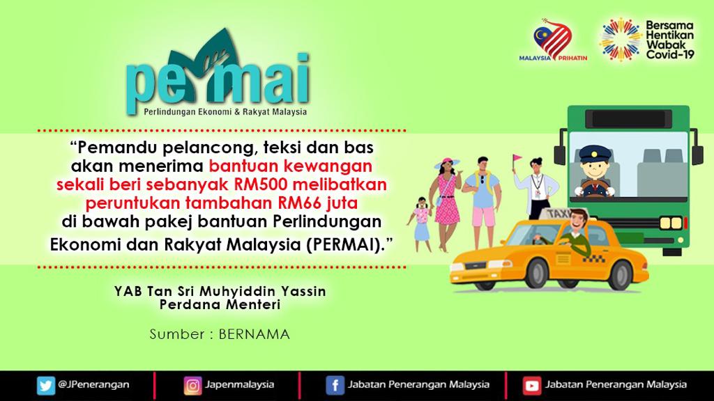 PEMANDU PELANCONG, TEKSI DAN BAS AKAN MENERIMA BANTUAN KEWANGAN SEKALI SEBANYAK RM500 MELIBATKAN PERUNTUKKAN TAMBAHAN RM66 JUTA DI BAWAH PAKEJ BANTUAN PERLINDUNGAN EKONOMI DAN RAKYAT MALAYSIA (PERMAI)