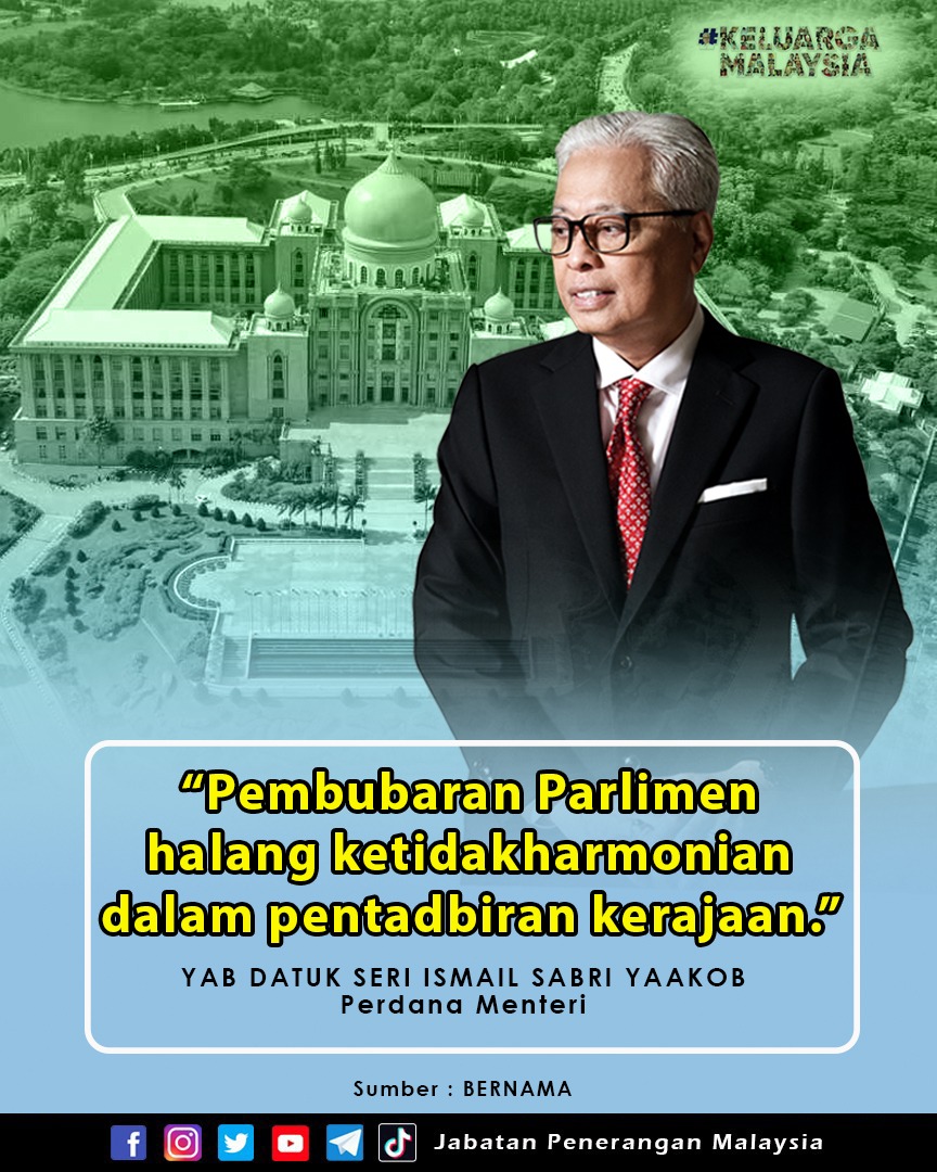 PEMBUBARAN PARLIMEN HALANG KETIDAKHARMONIAN DALAM PENTADBIRAN KERAJAAN