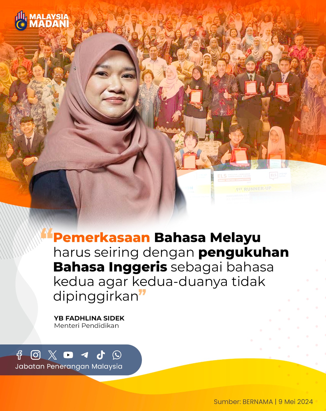 PEMERKASAAN BAHASA MELAYU HARUS SEIRING DENGAN PENGUKUHAN BAHASA INGGERIS SEBAGAI BAHASA KEDUA AGAR KEDUA-DUANYA TIDAK DIPINGGIRKAN
