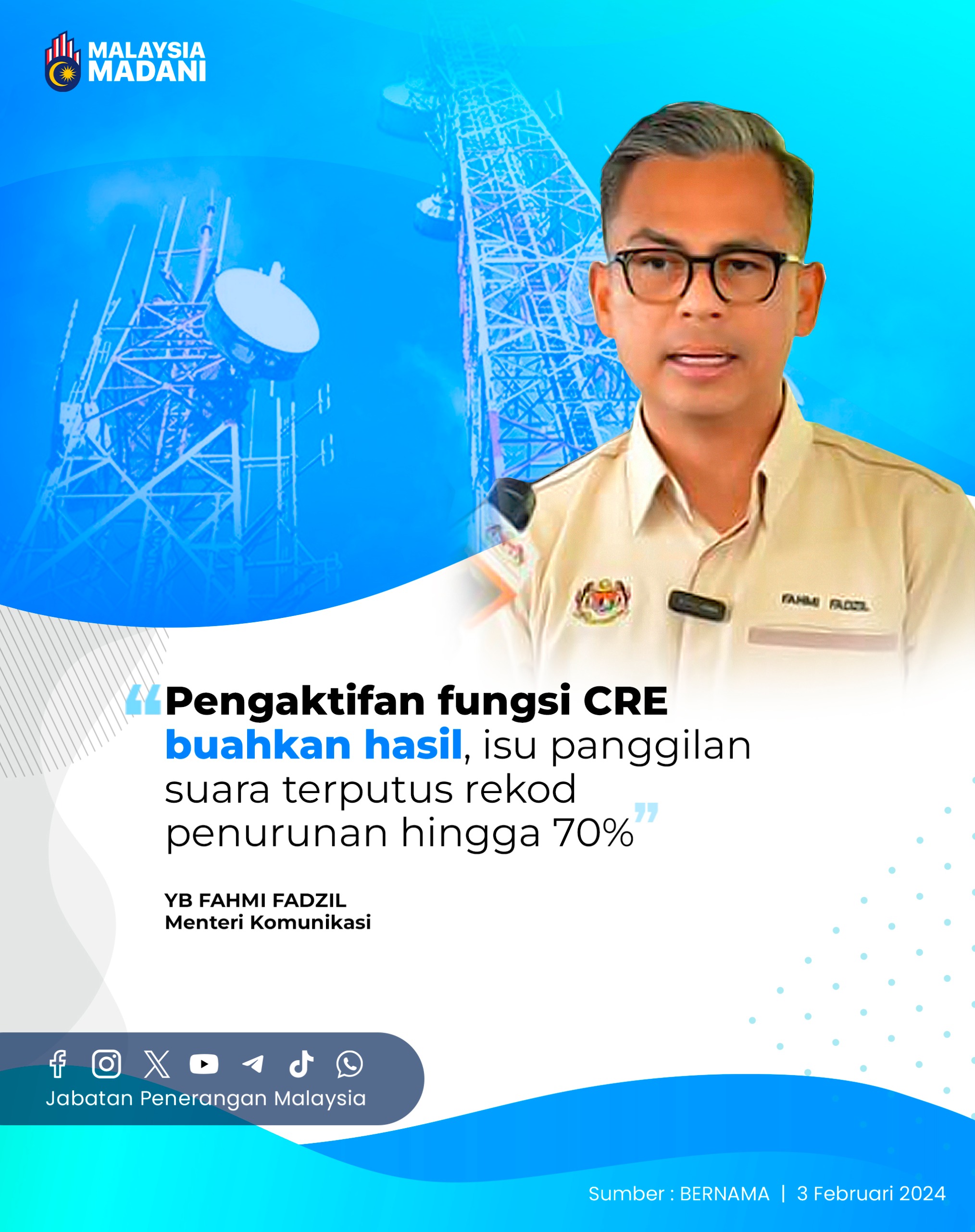 PENGAKTIFAN FUNGSI CRE BUAHKAN HASIL, ISU PANGGILAN SUARA TERPUTUS REKOD PENURUNAN HINGGA 70%