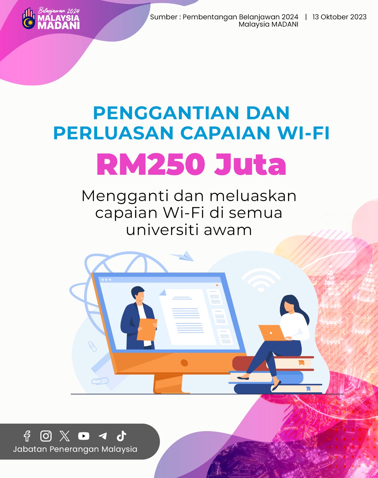 PENGGANTIAN DAN PERLUASAN CAPAIAN WI-FI RM250 JUTA MENGGANTI DAN MELUASKAN CAPAIAN WI-FI DI SEMUA UNIVERSITI AWAM