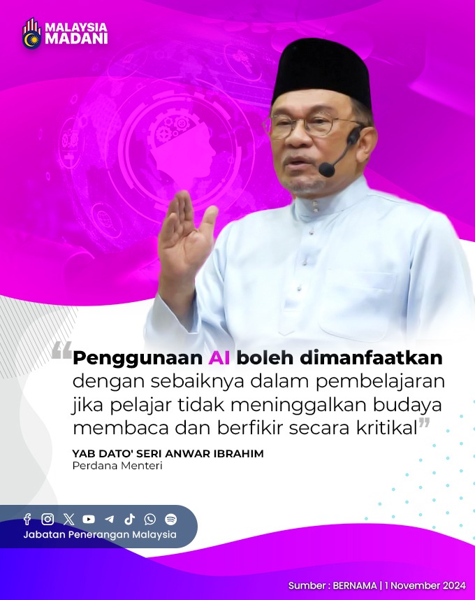 PENGGUNAAN AI BOLEH DIMANFAATKAN DENGAN SEBAIKNYA DALAM PEMBELAJARAN JIKA PELAJAR TIDAK MENINGGALKAN BUDAYA MEMBACA DAN BERFIKIR SECARA KRITIKAL