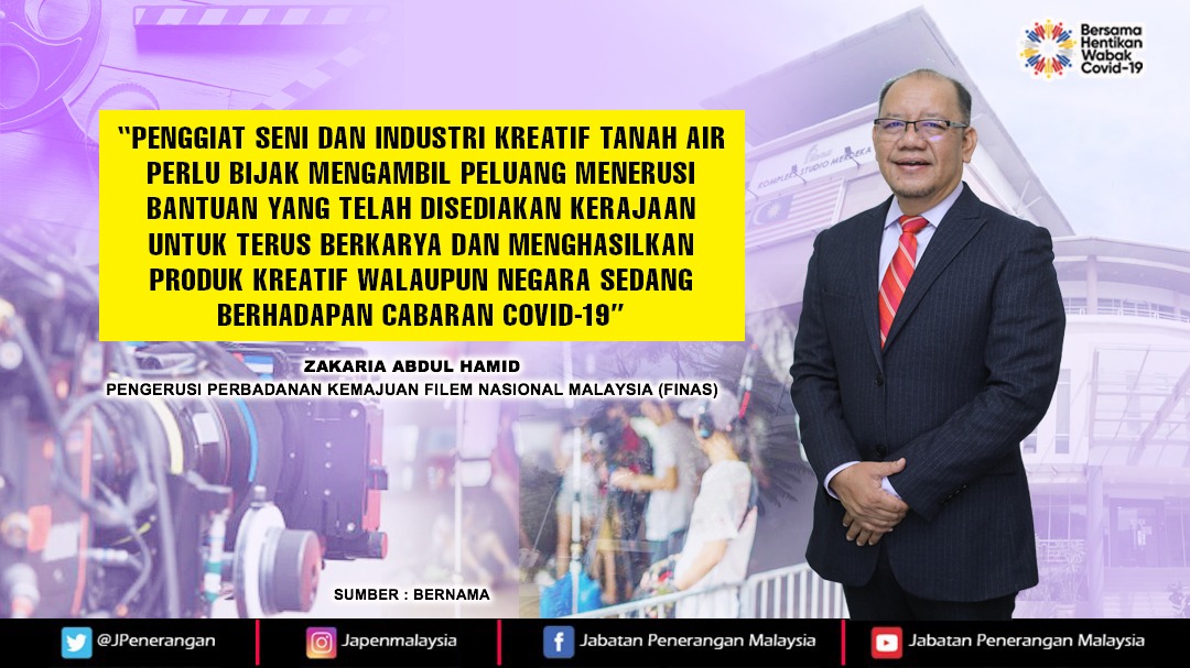 PENGIAT SENI DAN INDUSTRI KREATIF TANAH AIR PERLU BIJAK MENGAMBIL PELUANG MENERUSI BANTUAN YANG TELAH DISEDIAKAN KERAJAAN UNTUK TERUS BERKARYA DAN MENGHASILKAN PRODUK KREATIF WALAUPUN NEGARA SEDANG BERHADAPAN CABARAN COVID 19