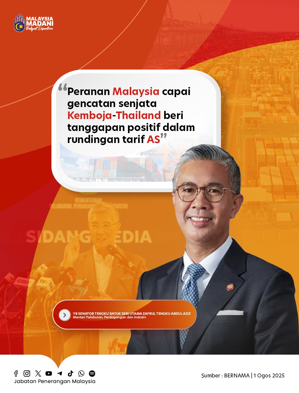 PERANAN MALAYSIA CAPAI GENCATAN SENJATA KEMBOJA-THAILAND BERI TANGGAPAN POSITIF DALAM RUNDINGAN TARIF AS