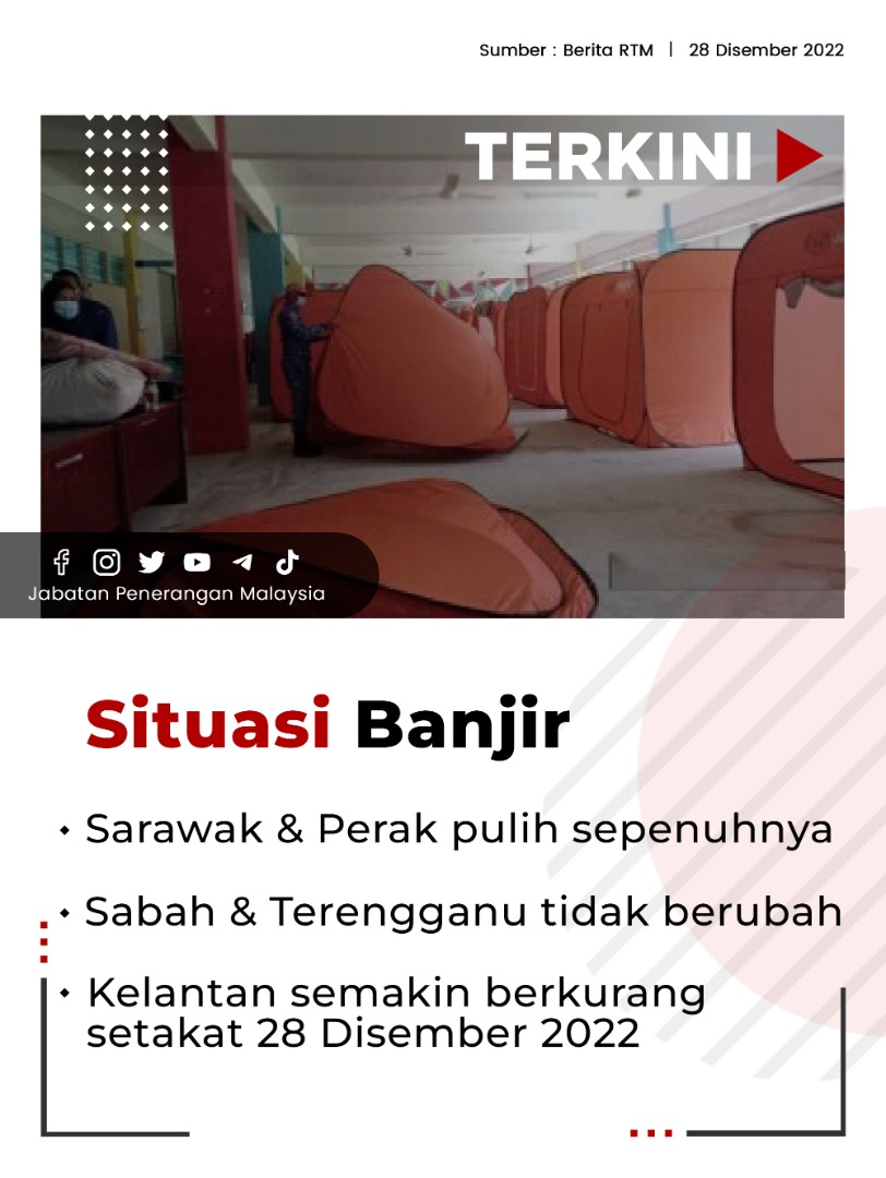 PERKEMBANGAN SEMASA SITUASI BANJIR DI MALAYSIA SETAKAT 28 DISEMBER 2022 (RABU)