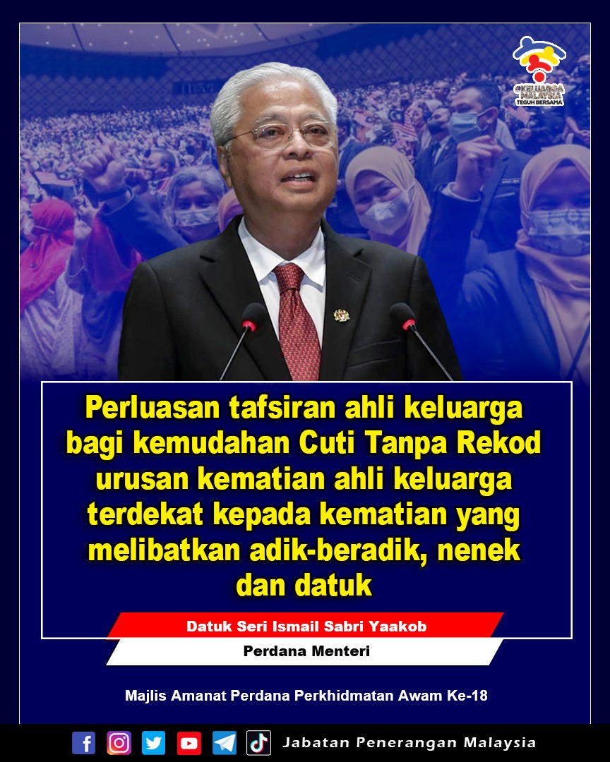 PERLUASAN TAFSIRAN AHLI KELUARGA BAGI KEMUDAHAN CUTI TANPA REKOD URUSAN KEMATIAN AHLI KELUARGA TERDEKAT KEPADA KEMATIAN YANG MELIBATKAN ADIK-BERADIK, NENEK DAN DATUK