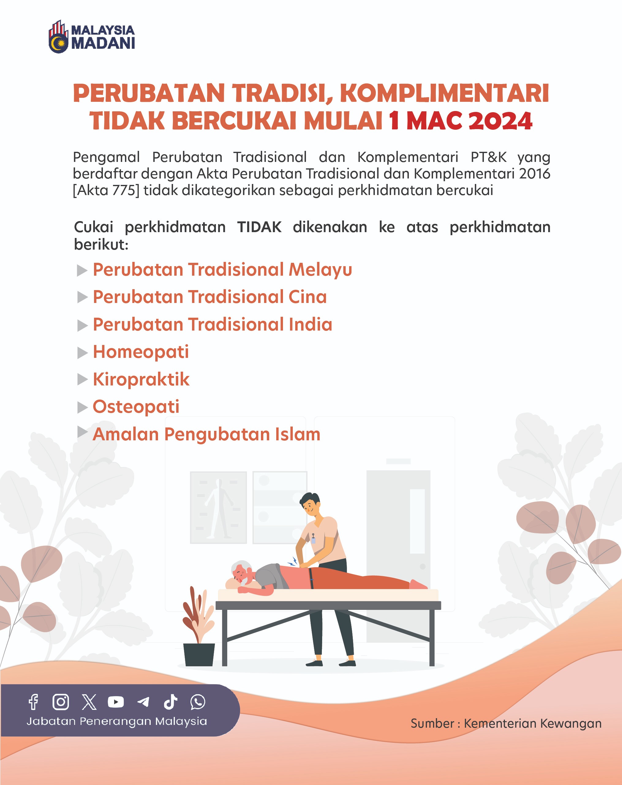PERUBATAN TRADISI, KOMPLIMENTARI TIDAK BERCUKAI MULAI 1 MAC 2024