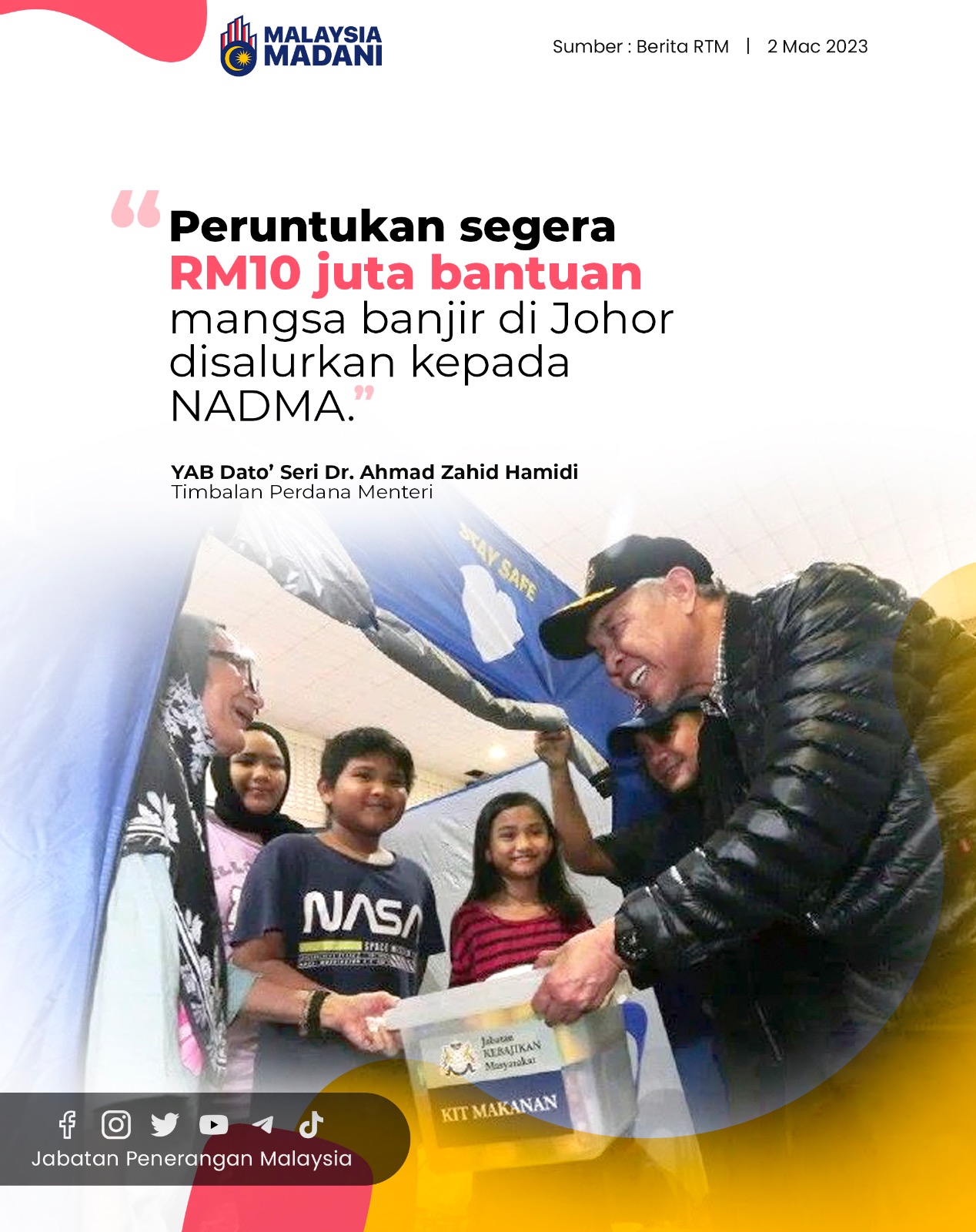 PERUNTUKKAN SEGERA RM10 JUTA BANTUAN MANGSA BANJIR DI JOHOR DISALURKAN KEPADA NADMA