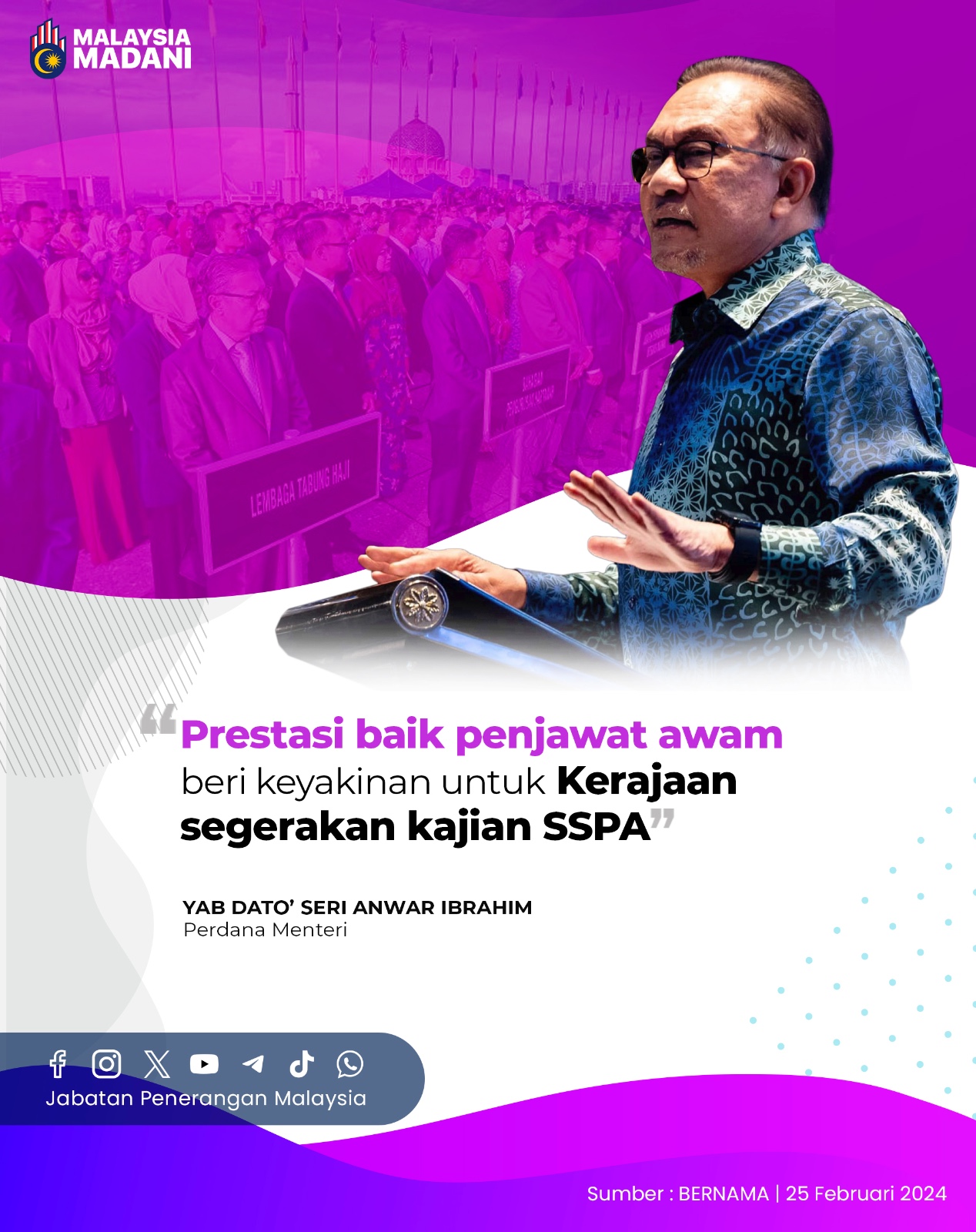 PRESTASI BAIK PENJAWAT BERI KEYAKINAN UNTUK KERAJAAN SEGERAKAN KAJIAN SSPA